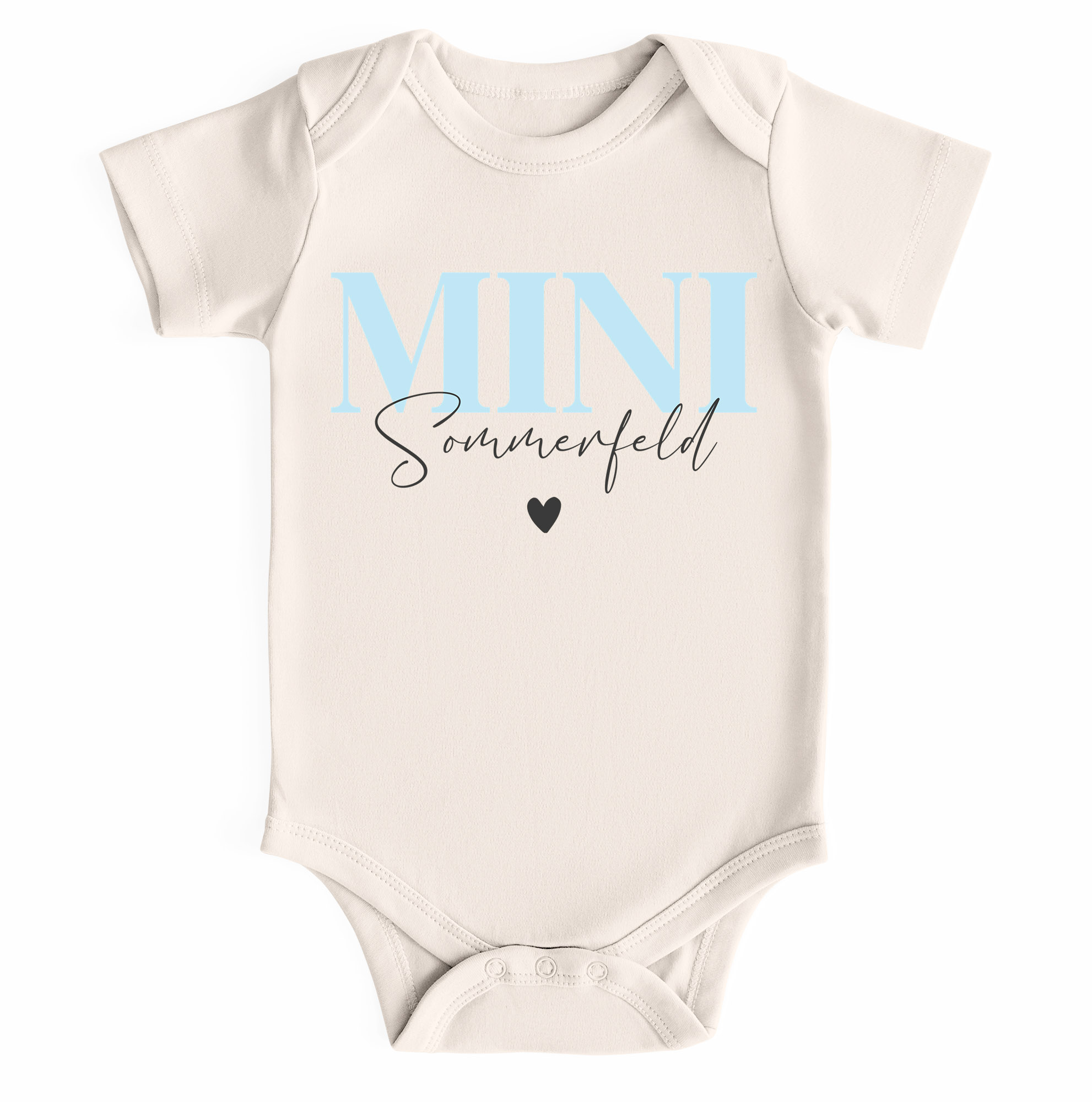- Niedllicher Babybody mit dem anpassbarem Schriftzug „Mini“ und deinem Familiennamen – ein trendiges Outfit für kleine Lieblingsmenschen und ein herzallerliebstes Geschenk zur Geburt oder Taufe im echten Mini-Me-Style. Einfach "Jetzt anpassen" und Wunschname eingeben