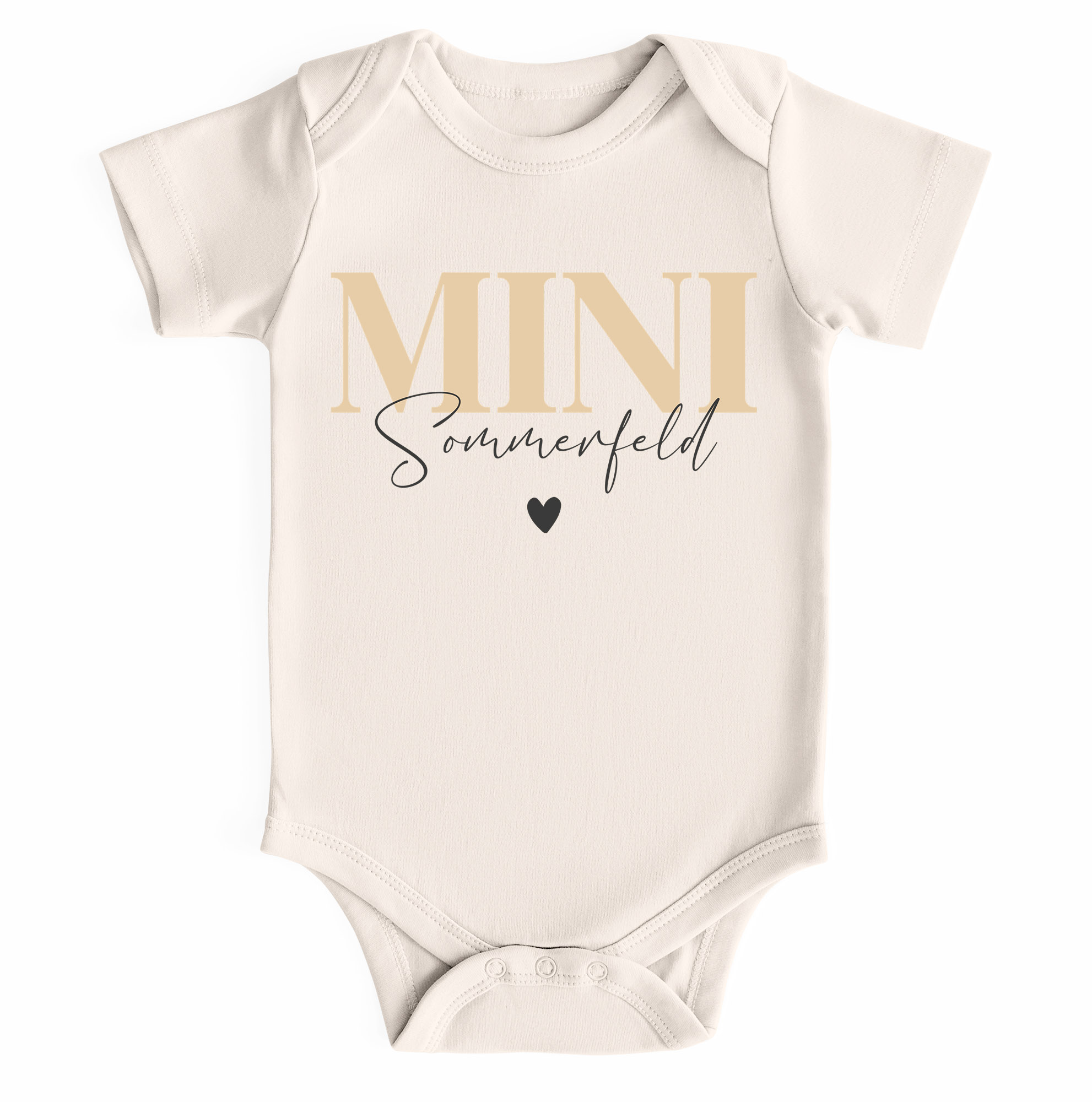 - Niedllicher Babybody mit dem anpassbarem Schriftzug „Mini“ und deinem Familiennamen – ein trendiges Outfit für kleine Lieblingsmenschen und ein herzallerliebstes Geschenk zur Geburt oder Taufe im echten Mini-Me-Style. Einfach "Jetzt anpassen" und Wunschname eingeben
