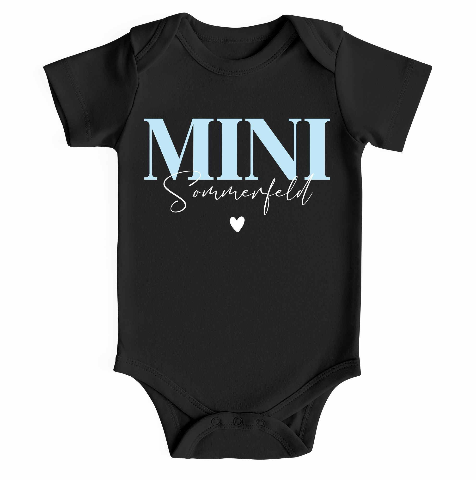 - Niedllicher Babybody mit dem anpassbarem Schriftzug „Mini“ und deinem Familiennamen – ein trendiges Outfit für kleine Lieblingsmenschen und ein herzallerliebstes Geschenk zur Geburt oder Taufe im echten Mini-Me-Style. Einfach "Jetzt anpassen" und Wunschname eingeben