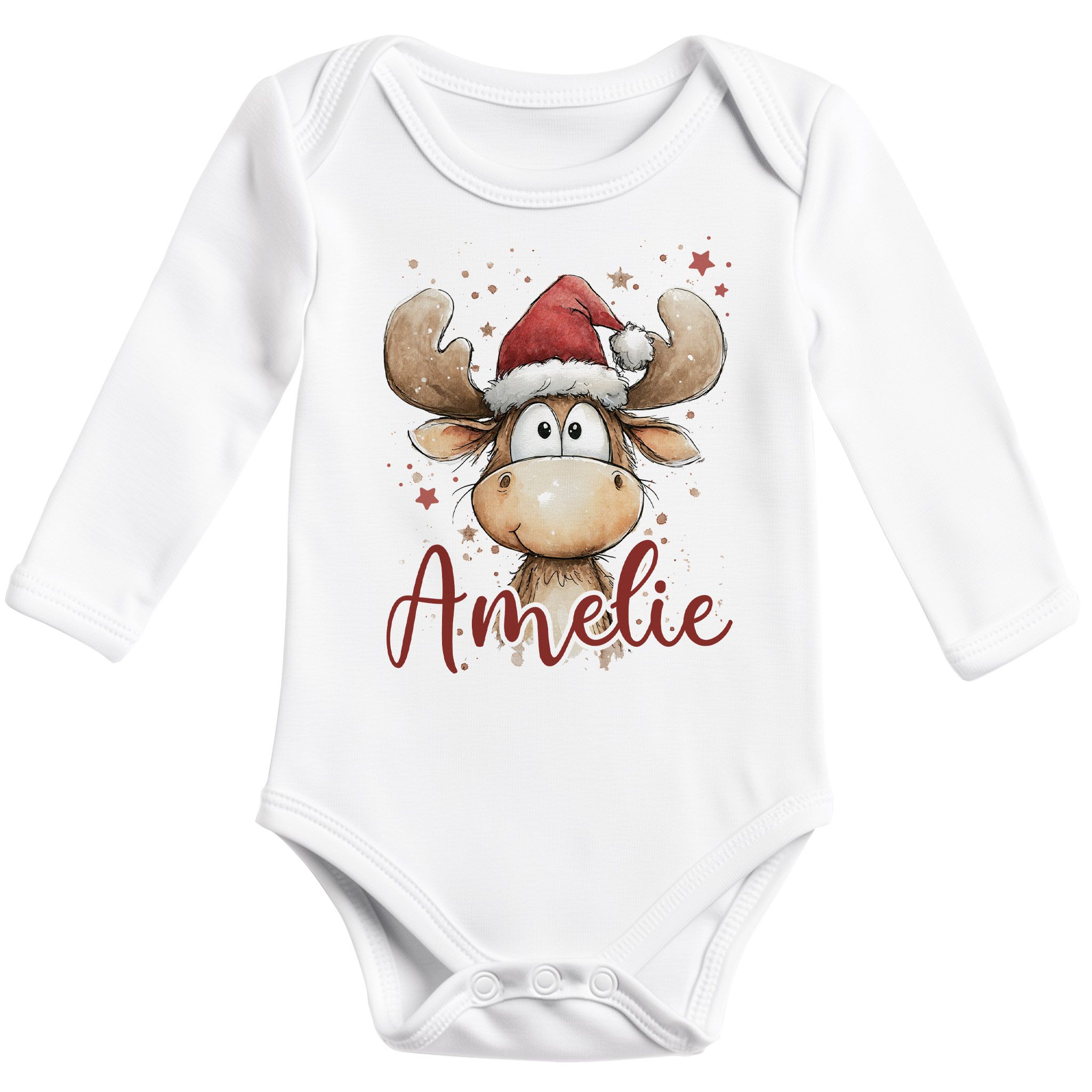 - Weihnachtsshirt mit Wunschname, süßem Tiermotiv und Santa-Mütze – das ideale Outfit für „Mein erstes Weihnachten“ und festliche Babyfotos - personalisierte Babykleidung für unvergessliche erste Weihnachten