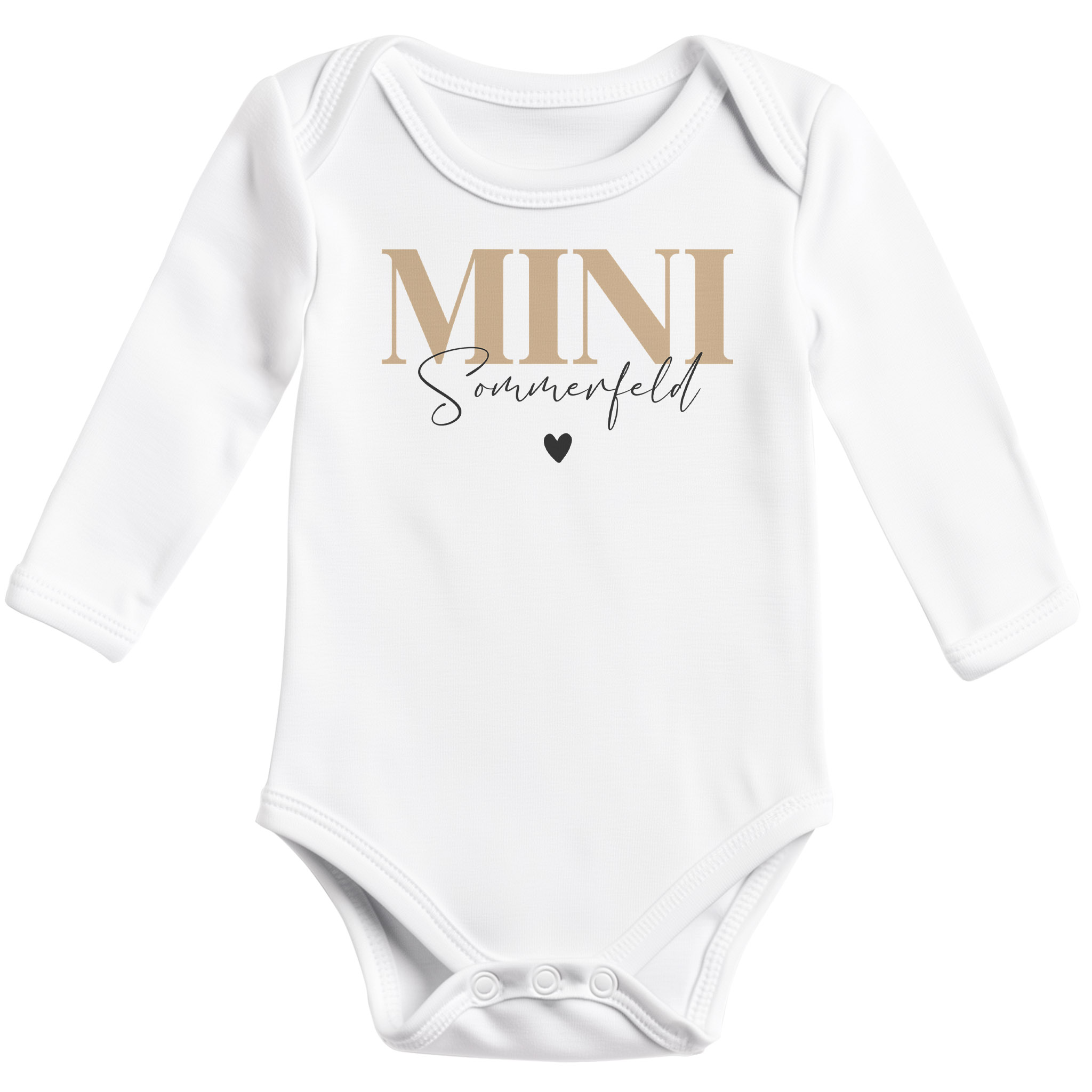 Mach das Outfit deines kleinen Lieblings einzigartig! Unser Baby Body aus weicher Bio-Baumwolle lässt sich ganz einfach mit dem eigenen Namen personalisieren. Egal ob Mädchen oder Junge, dieser Langarm-Body ist die perfekte Wahl für stylische und bequeme Babyklamotten.