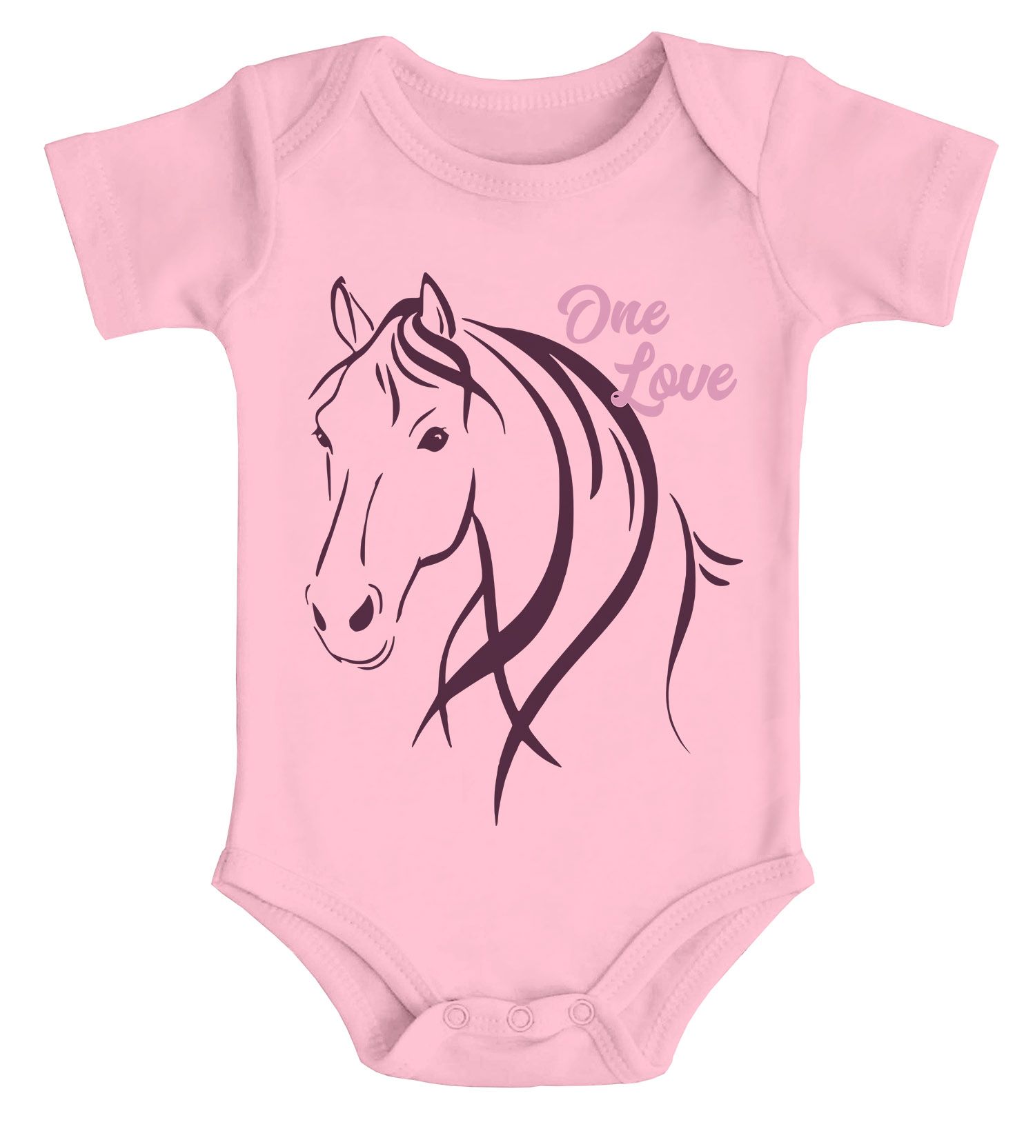 • Schon der Mama liegt die Leidenschaft für Pferde und Reiten im Blut?! Da muss natürlich auch das passende Outfit für den Nachwuchs her. Schöner Body für kleine Mädchen mit zauberhaftem Pferdemotiv und Schriftzug "One Love"