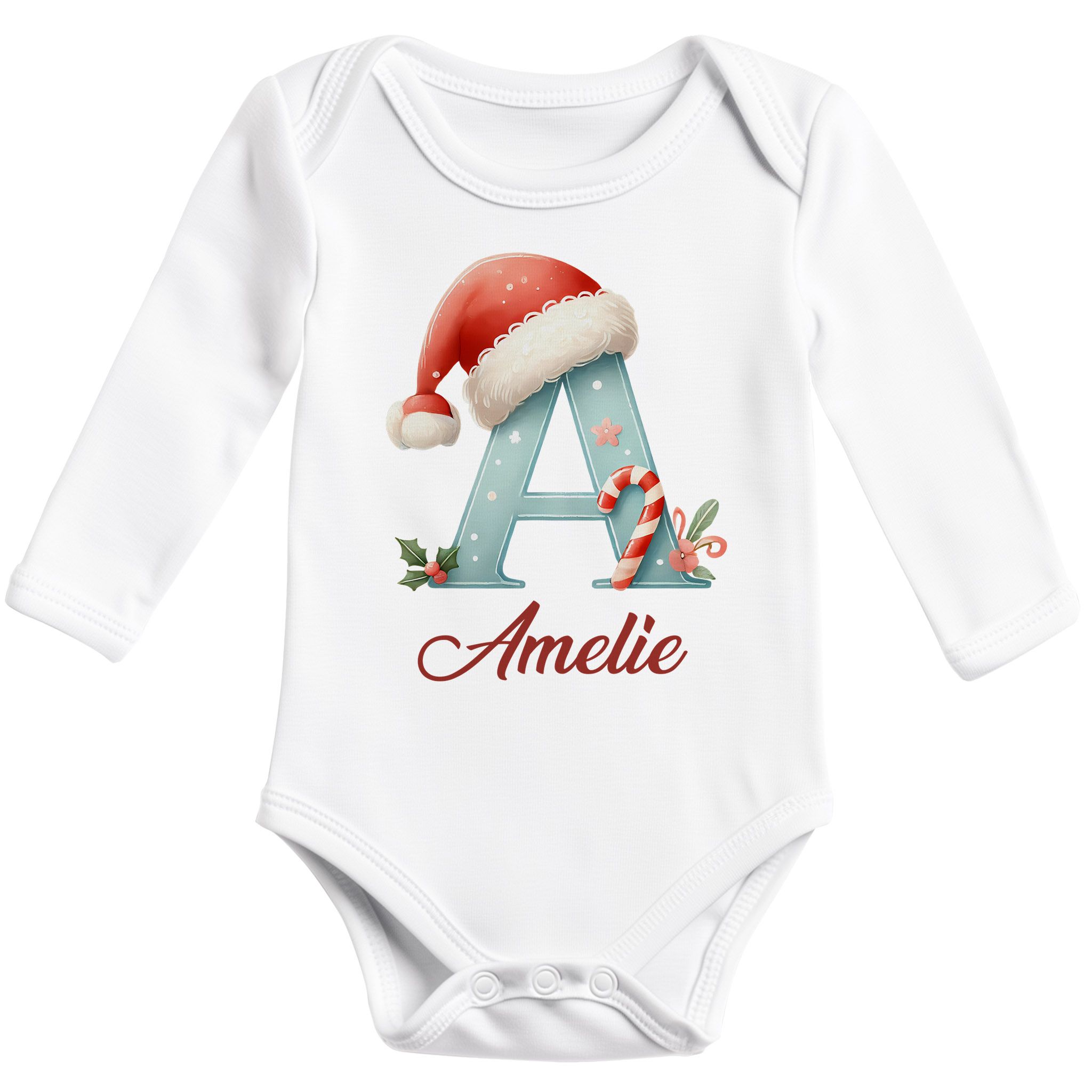 - Weihnachtliches Design mit Initialen: Der große Anfangsbuchstabe im Winter-Look mit Weihnachtsmütze und allerlei Weihnachtsdeko macht diesen langärmeligen-Babybody zu einem echten Hingucker.Ein zuckersüßes Weihnachtsoutfit für kleine Mädels und Jungs fürs erste oder zweite Weihnachtsfest