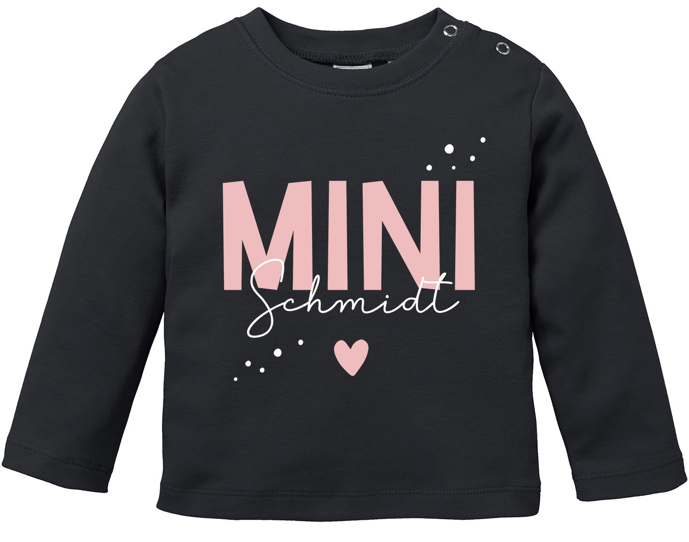 Baby Langarmshirt Schriftzug Mini personalisiert mit Familienname Wunschname Geschenk Geburt Taufe Jungen Mädchen SpecialMe®