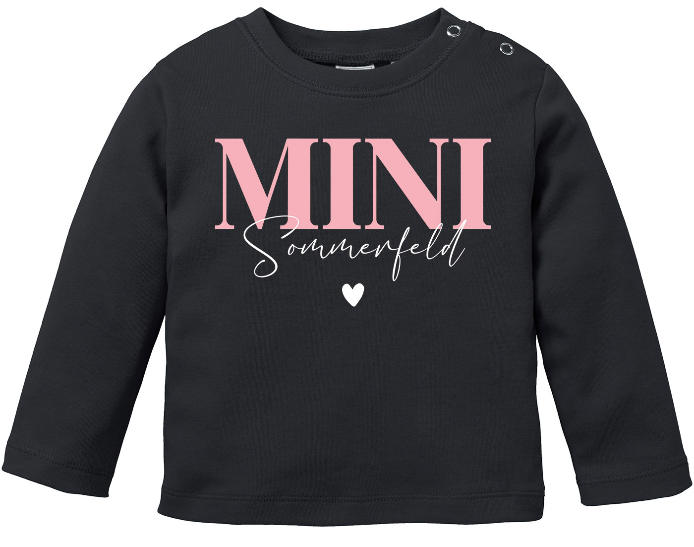 Baby Langarmshirt Schriftzug Mini personalisiert Wunschname Familienname Geschenk Geburt Taufe Jungen Mädchen SpecialMe®