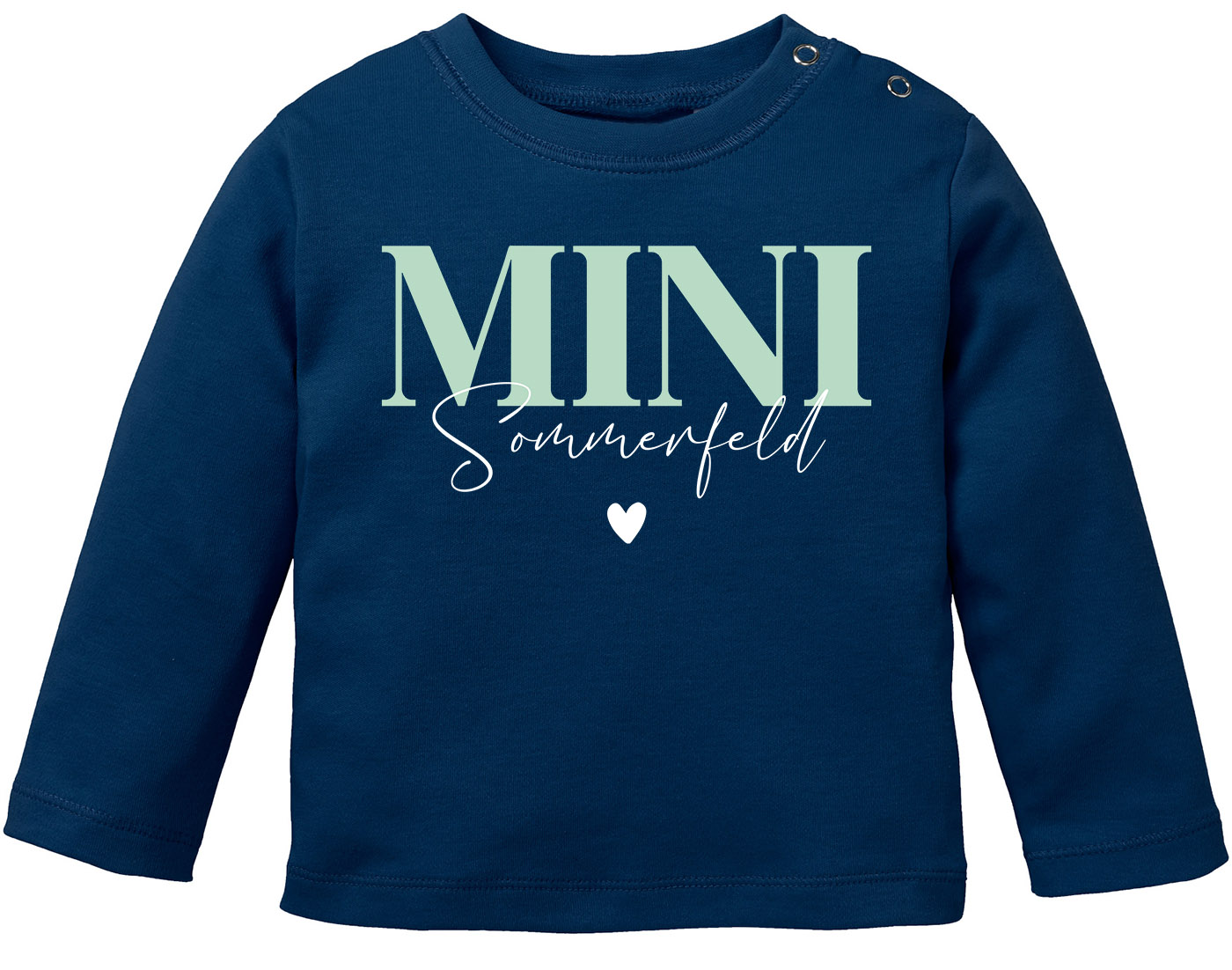 Baby Langarmshirt Schriftzug Mini personalisiert Wunschname Familienname Geschenk Geburt Taufe Jungen Mädchen SpecialMe®