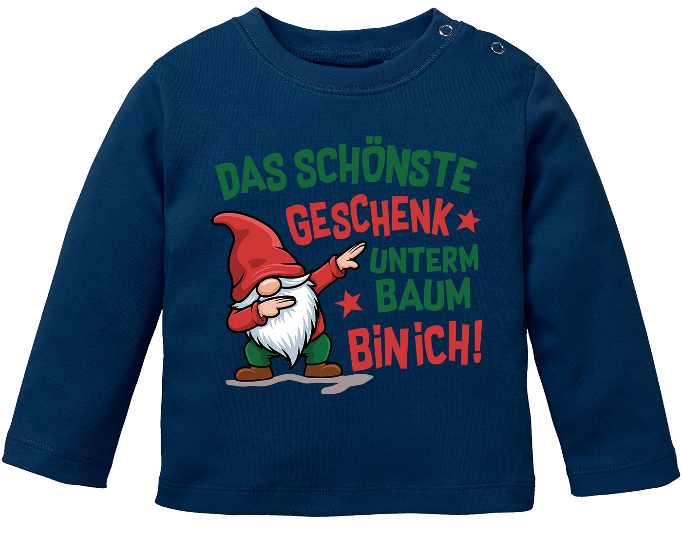 Baby Langarmshirt Weihnachtsshirt Spruch Das schönste Geschenk unterm Baum bin ich Babyshirt Weihnachtsmotiv MoonWorks®