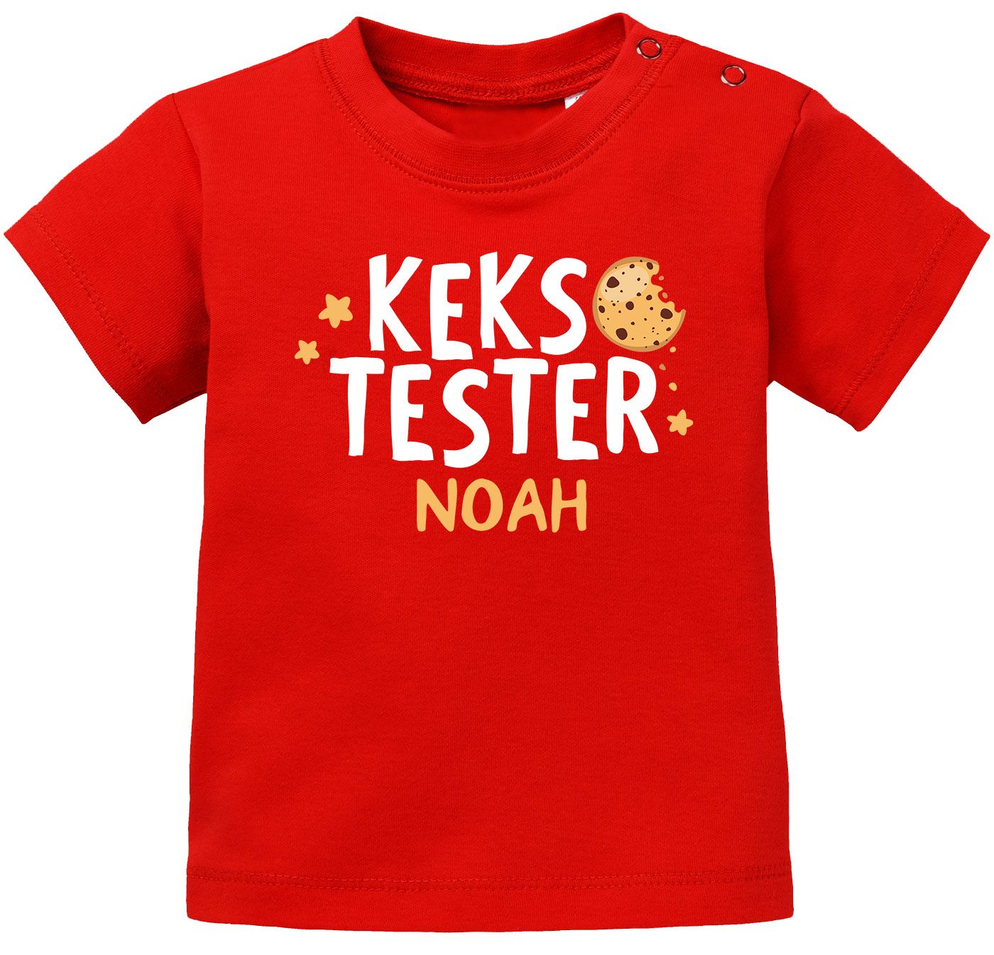 - Kurzarm Babyshirt mit Keks-Motiv – freches Weihnachts-Design für kleine Krümeltester, ideal als Geschenkidee, für Babys erstes Weihnachten, Fotoshootings oder als süßes Alltagsoutfit. Einfach unter "Jetzt anpassen" mit Name personalisieren