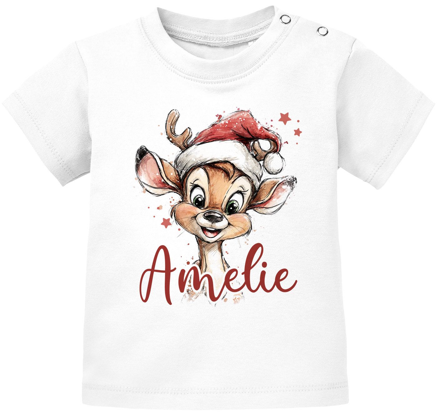 Baby Shirt kurzarm Weihnachten Weihnachtstiere Rentier Elch Kuh personalisiert mit Namen Babyshirt Jungen Mädchen SpecialMe®