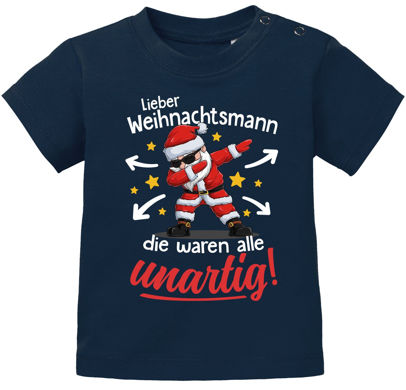 - Cooles Baby-Weihnachtsdesign: Santa im Dabbing-Move kombiniert mit dem Spruch „die waren alle unartig“ – ein süßer Hingucker für Advent, Kita & festliche Familientreffen. Ein XMAS Shirt für kleine Engel, die natürlich niemals unartig sind