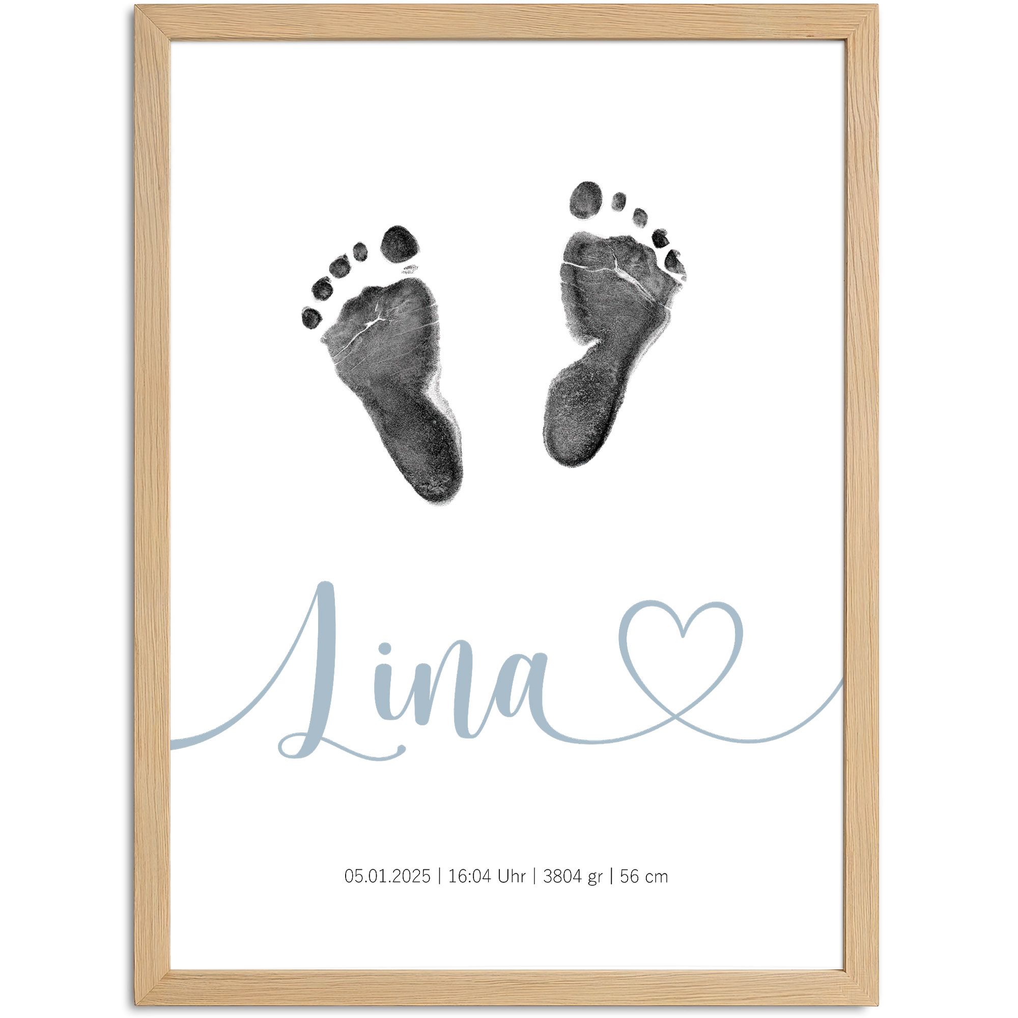 • Motiv: Poster für Handabdruck oder Fußabdruck, mit Herz, Namen, Geburtsdatum & Geburtsdaten
