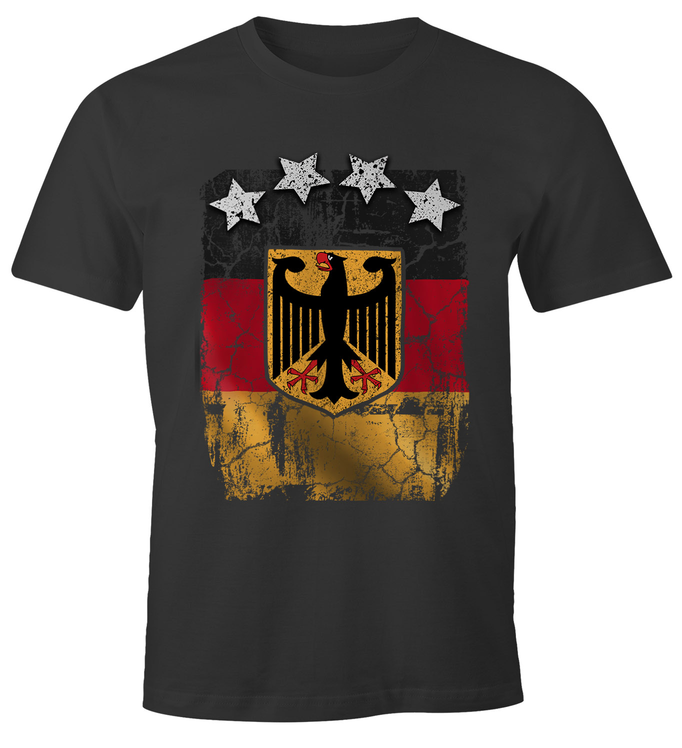 • cooles, stylishes Herren T-Shirt zur WM 2026 mit Vintage Deutschland Flaggen Aufdruck der Marke Moonworks®