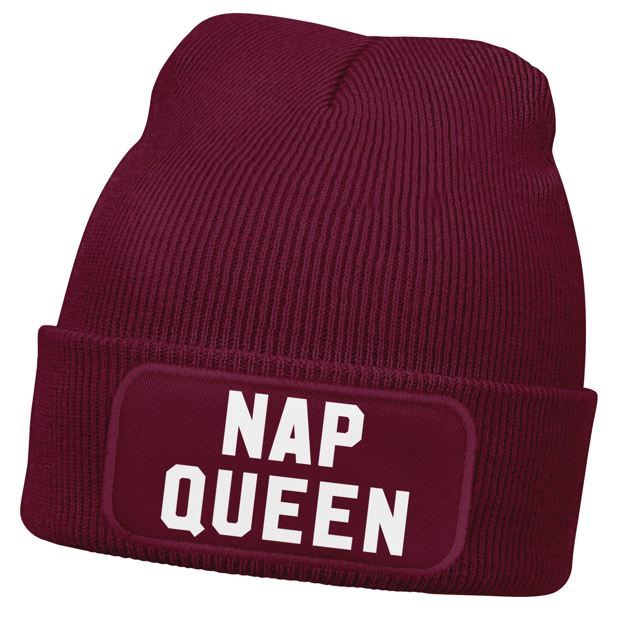 - Lustige Damen Wintermütze mit auffälligem Spruch Nap Queen für alle Frauen, die ihr Bett lieben und die gerne schlafen. Perfekt für Freizeit, Couch Tage oder als originelles Geschenk für Schlafmützen