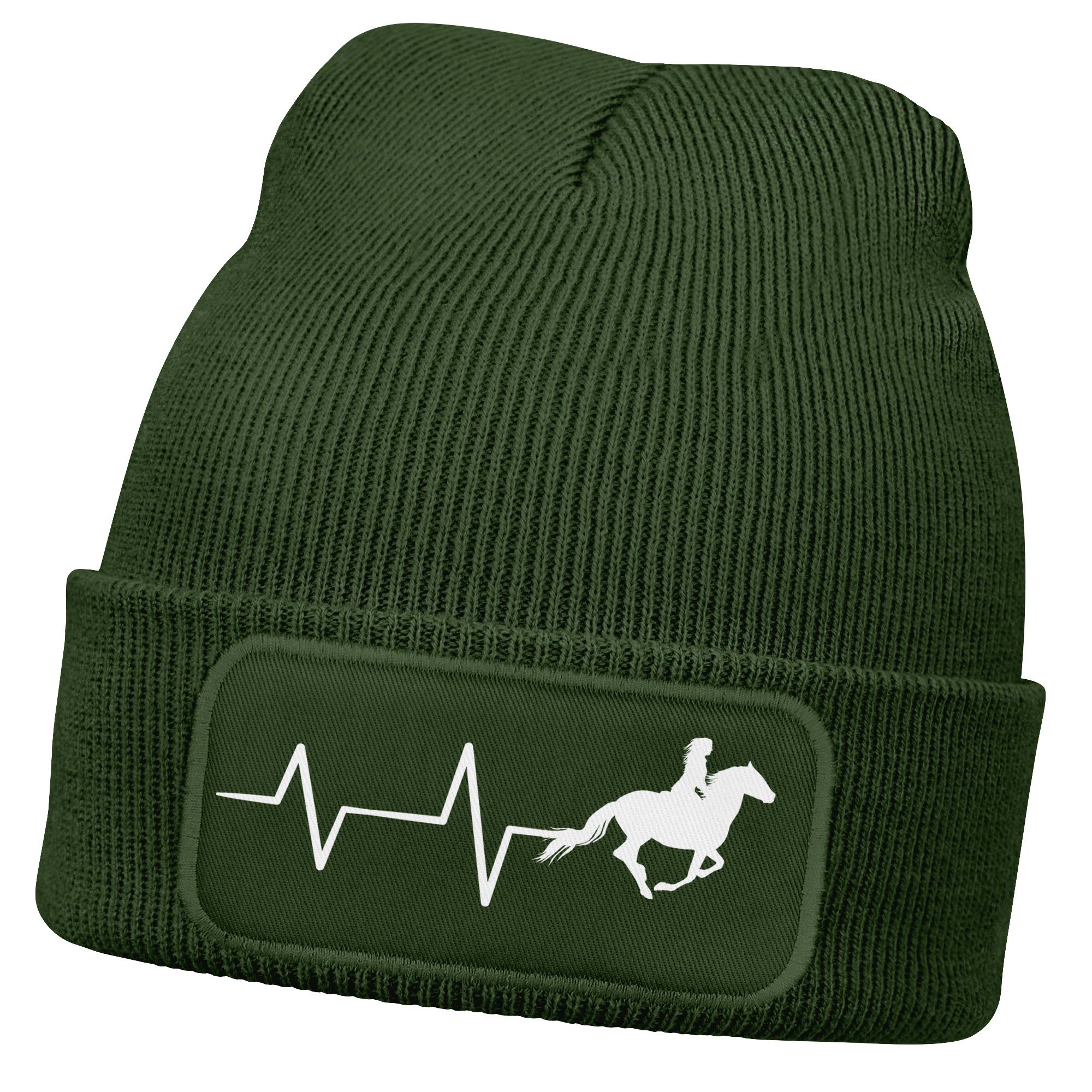 - Stylische Damen Beanie mit "Herzschlag Reiterin", Motiv, perfekt für Pferdeliebhaberinnen und Reitsport Fans. Der Strickbeanie hält warm und ist ein trendiges Accessoire für Stall. Freizeit und Alltag
