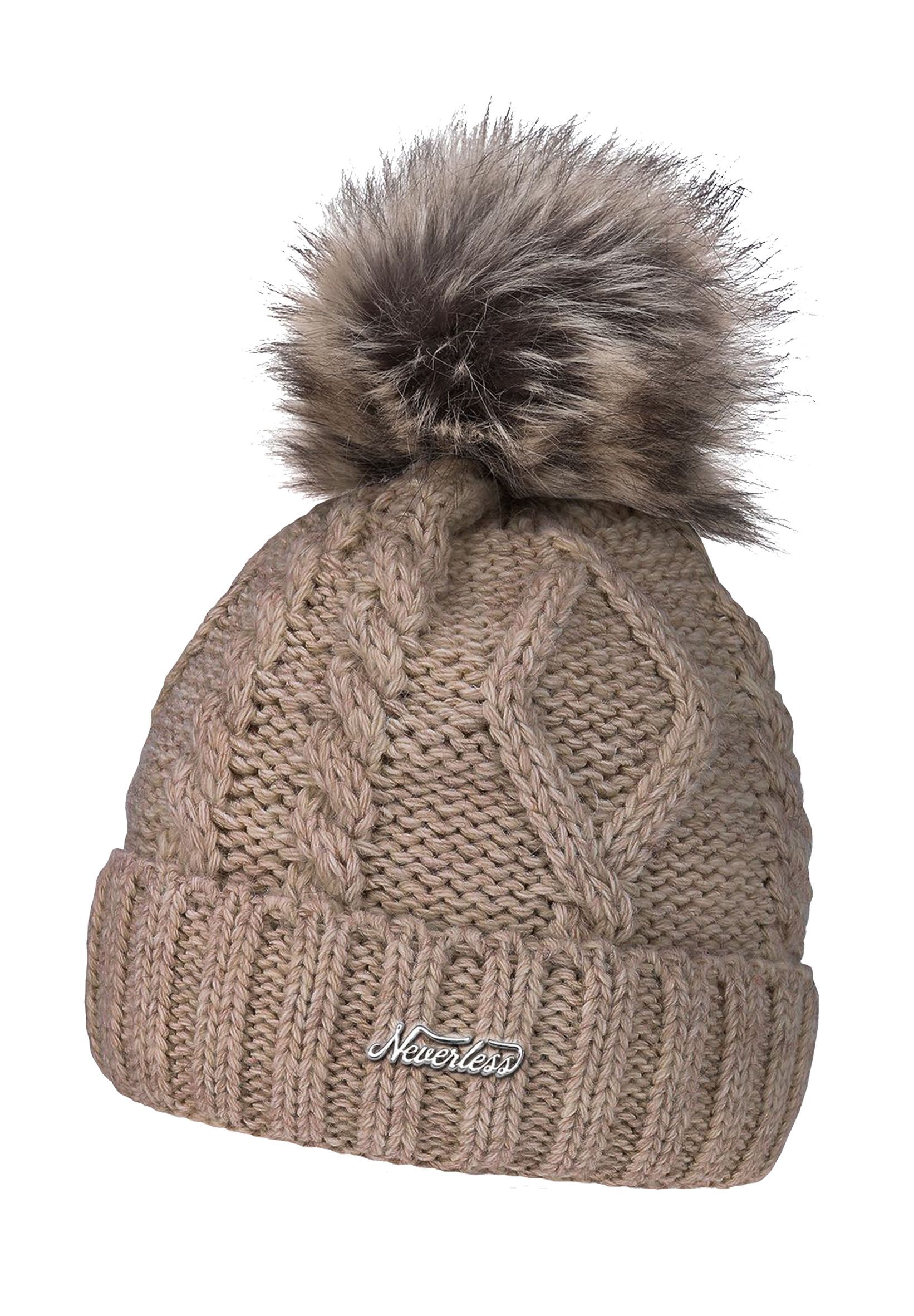 Damen Bommelmütze mit Fleecefutter Pudelmütze Strickbeanie Strickmütze Wintermütze Neverless®