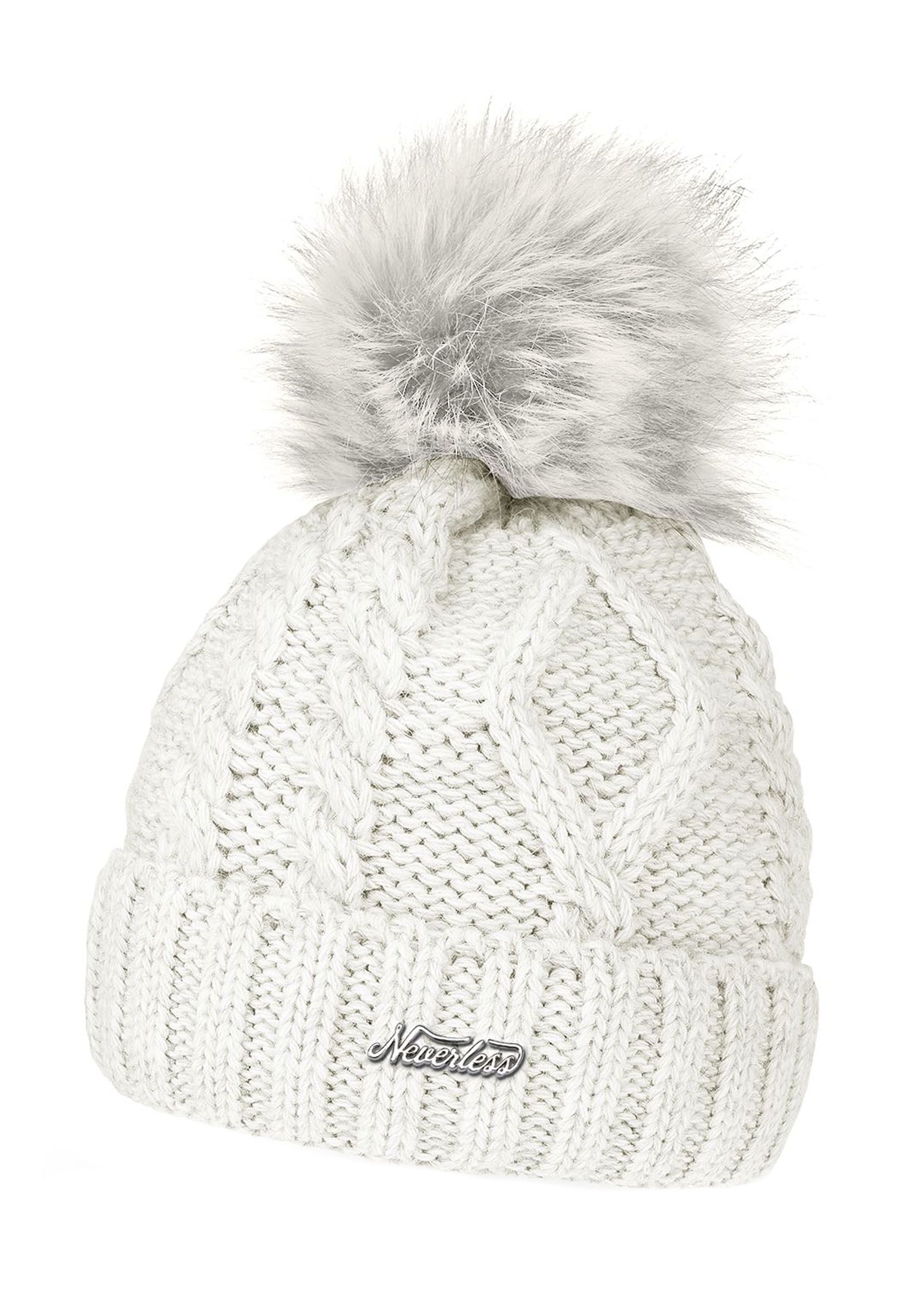 Damen Bommelmütze mit Fleecefutter Pudelmütze Strickbeanie Strickmütze Wintermütze Neverless®