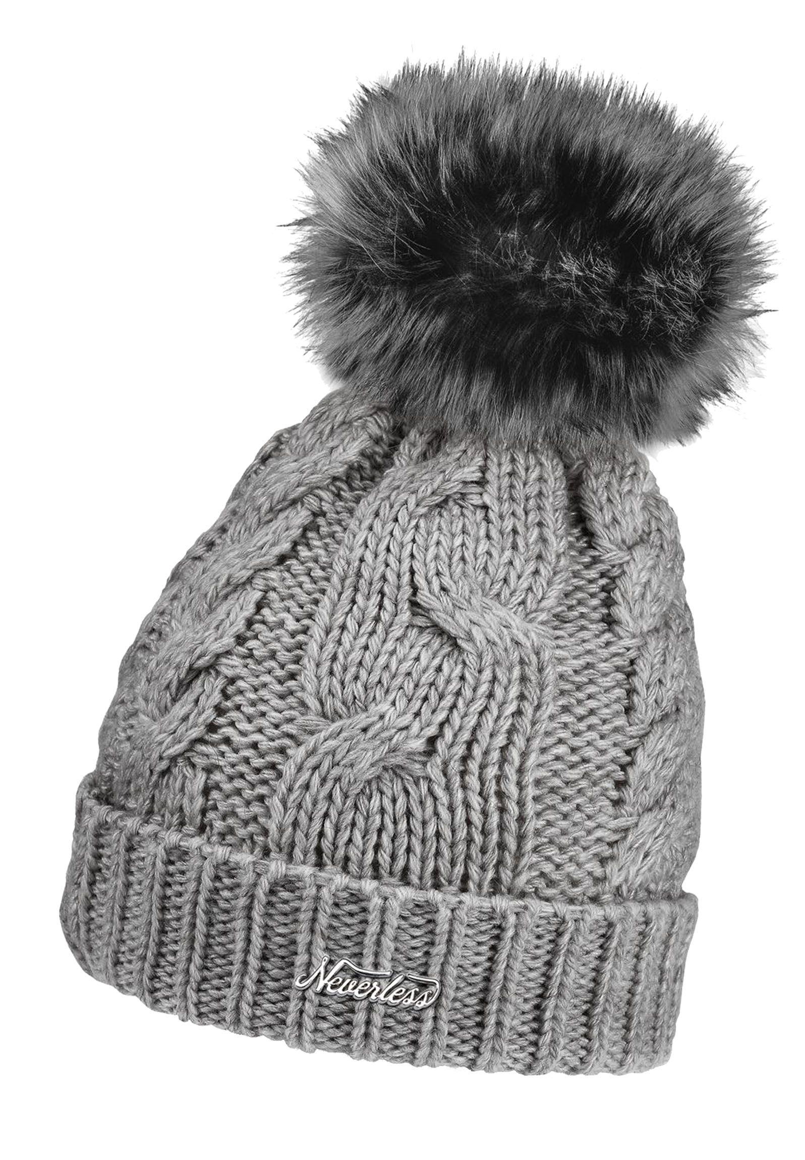 Damen Strick-Mütze Merino Wollmütze Bommelmütze Wintermütze mit Umschlag Pudelmütze Strickbeanie Neverless®