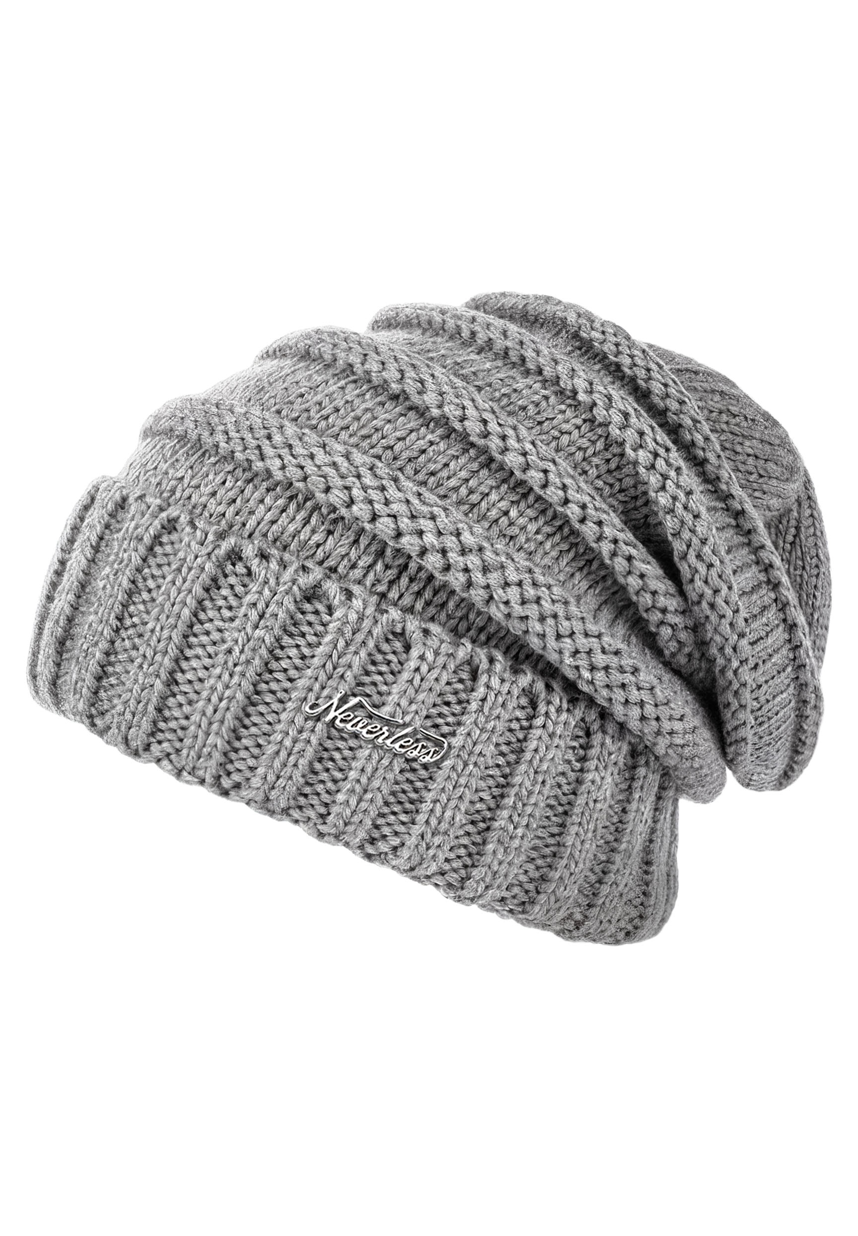Damen Strickbeanie Slouchy Strickmütze ohne Bommel Wintermütze mitUmschlag ungefüttert Grobstrick Neverless®