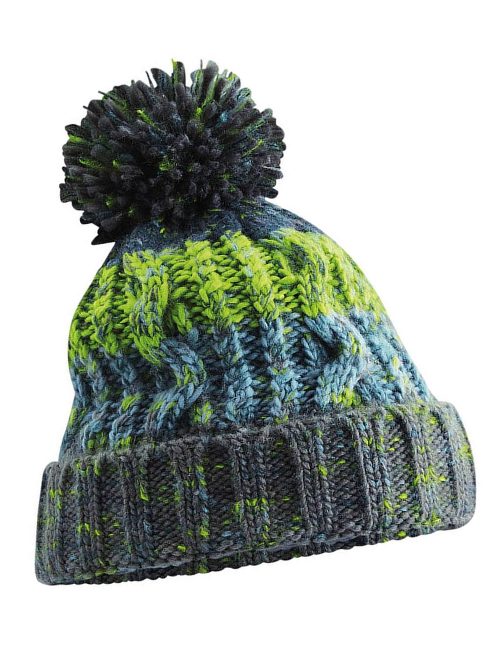 Damen Strickmütze Grobstrick Bunt Gemustert Fleecefutter Wintermütze Pudelmütze Strickbommel Neverless®