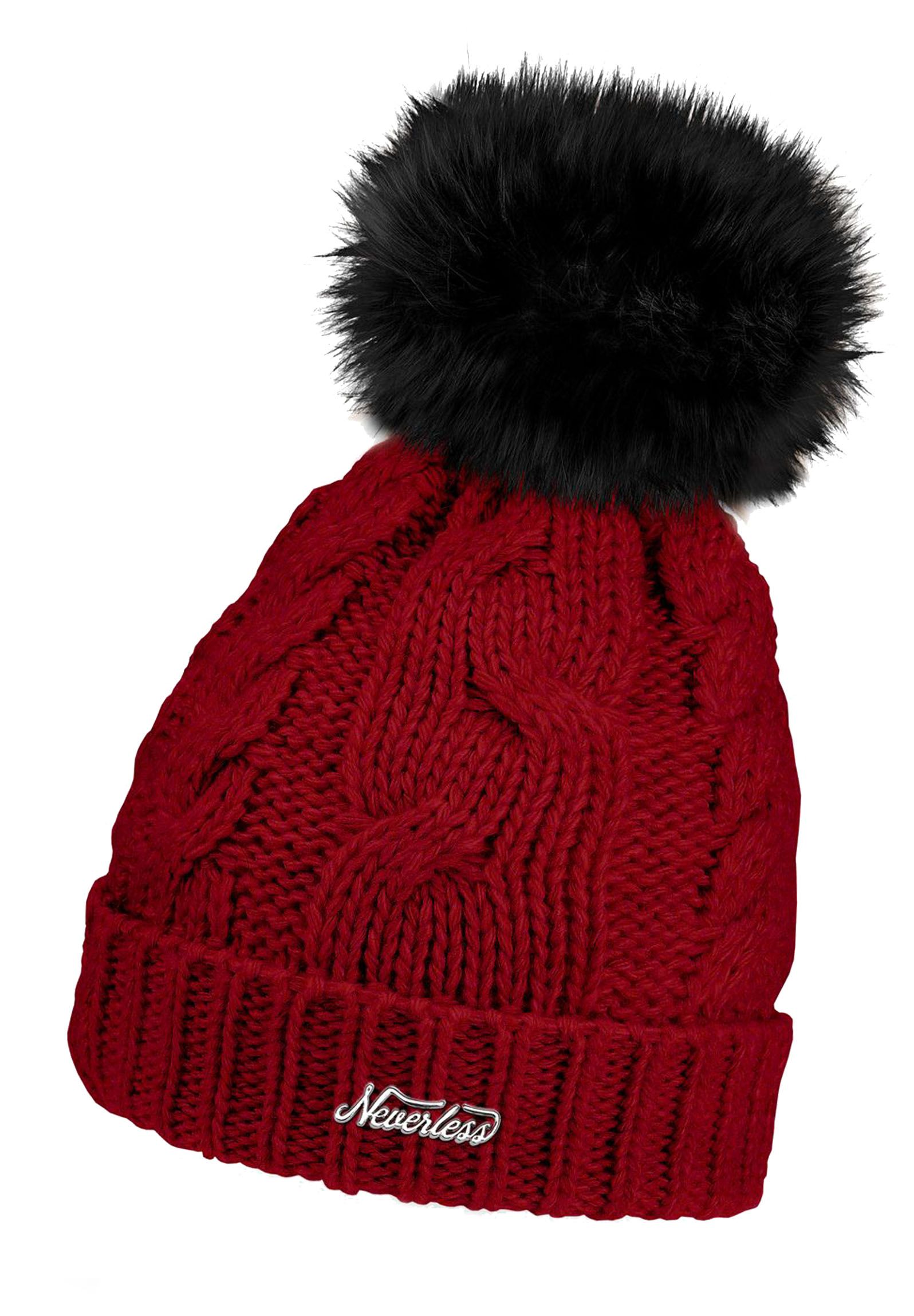 Damen Strickmütze mit Bommel Grobstrick Pudelmütze mit Fellbommel Fake Fur Wintermütze Neverless®