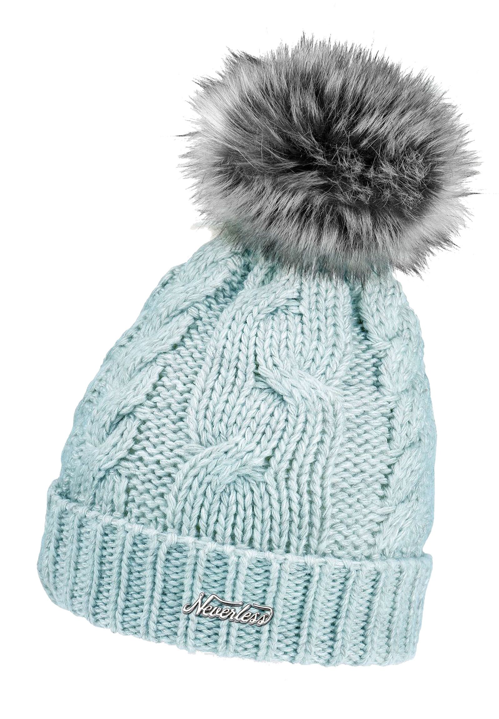 Damen Strickmütze mit Bommel Grobstrick Pudelmütze mit Fellbommel Fake Fur Wintermütze Neverless®