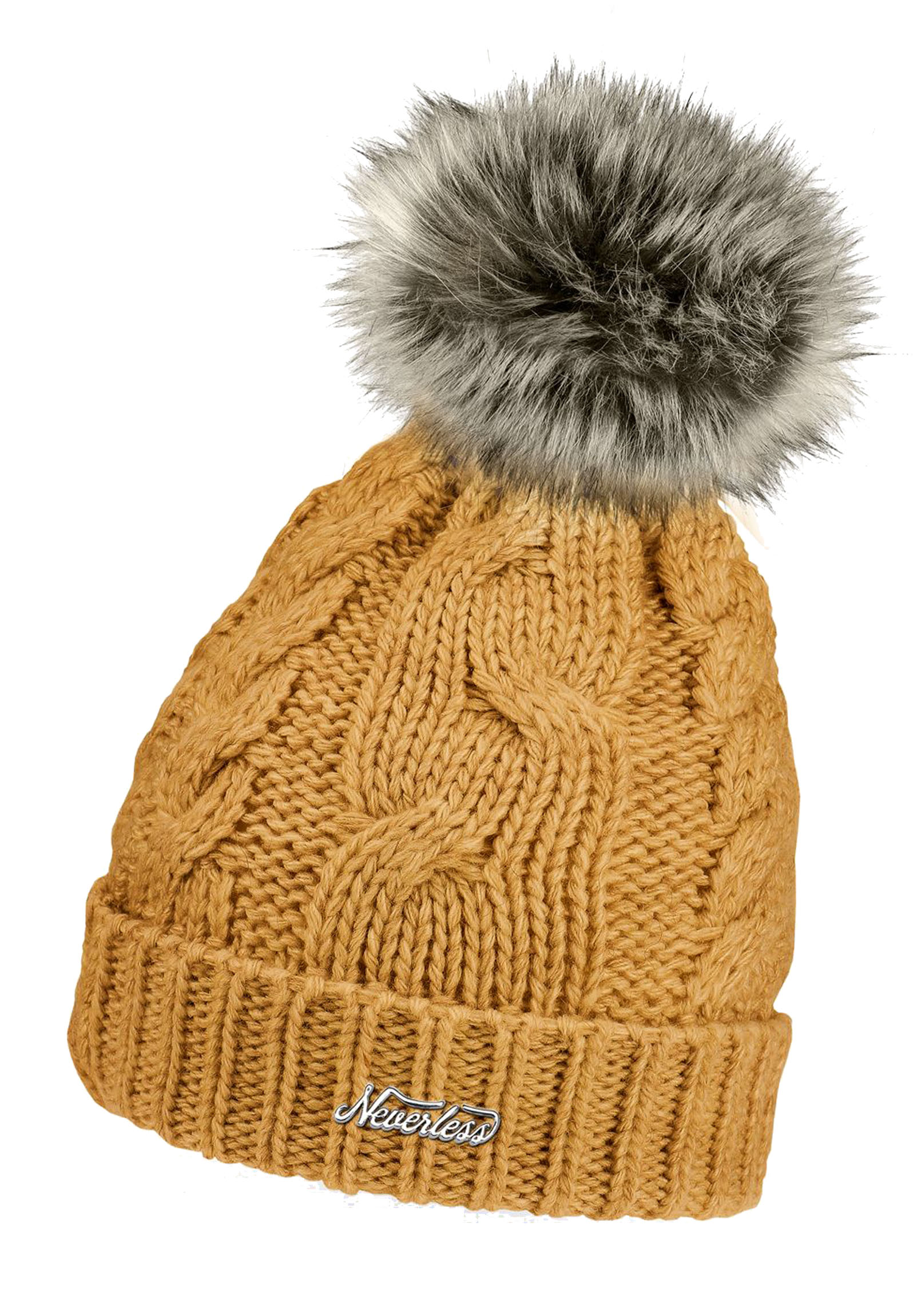 Damen Strickmütze mit Bommel Grobstrick Pudelmütze mit Fellbommel Fake Fur Wintermütze Neverless®