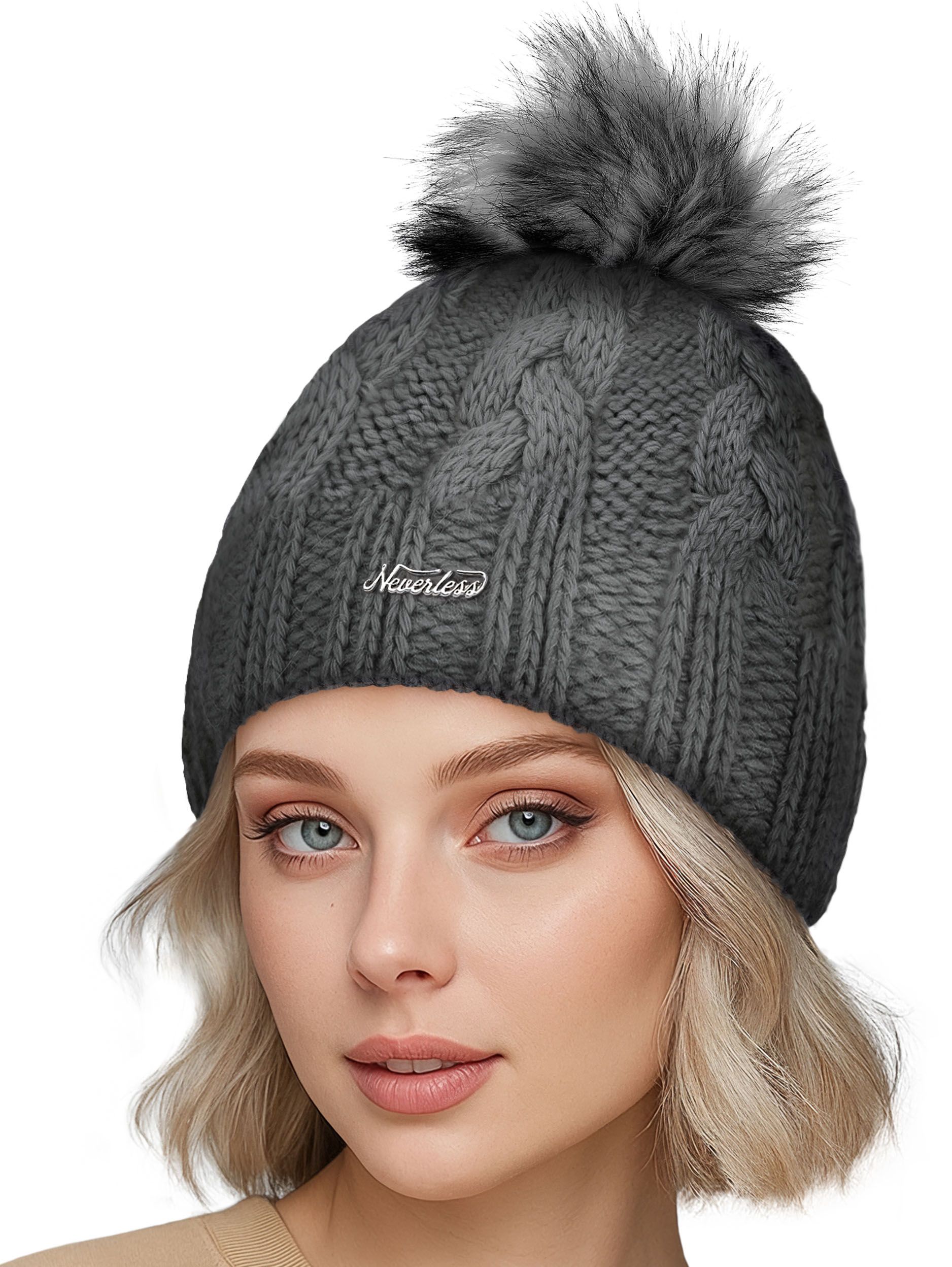 Damen Strickmütze Zopfmuster Fleccefutter Bommelmütze Pudelmütze Wintermütze Accessoires Herbst Winter Model 2213 Neverless®