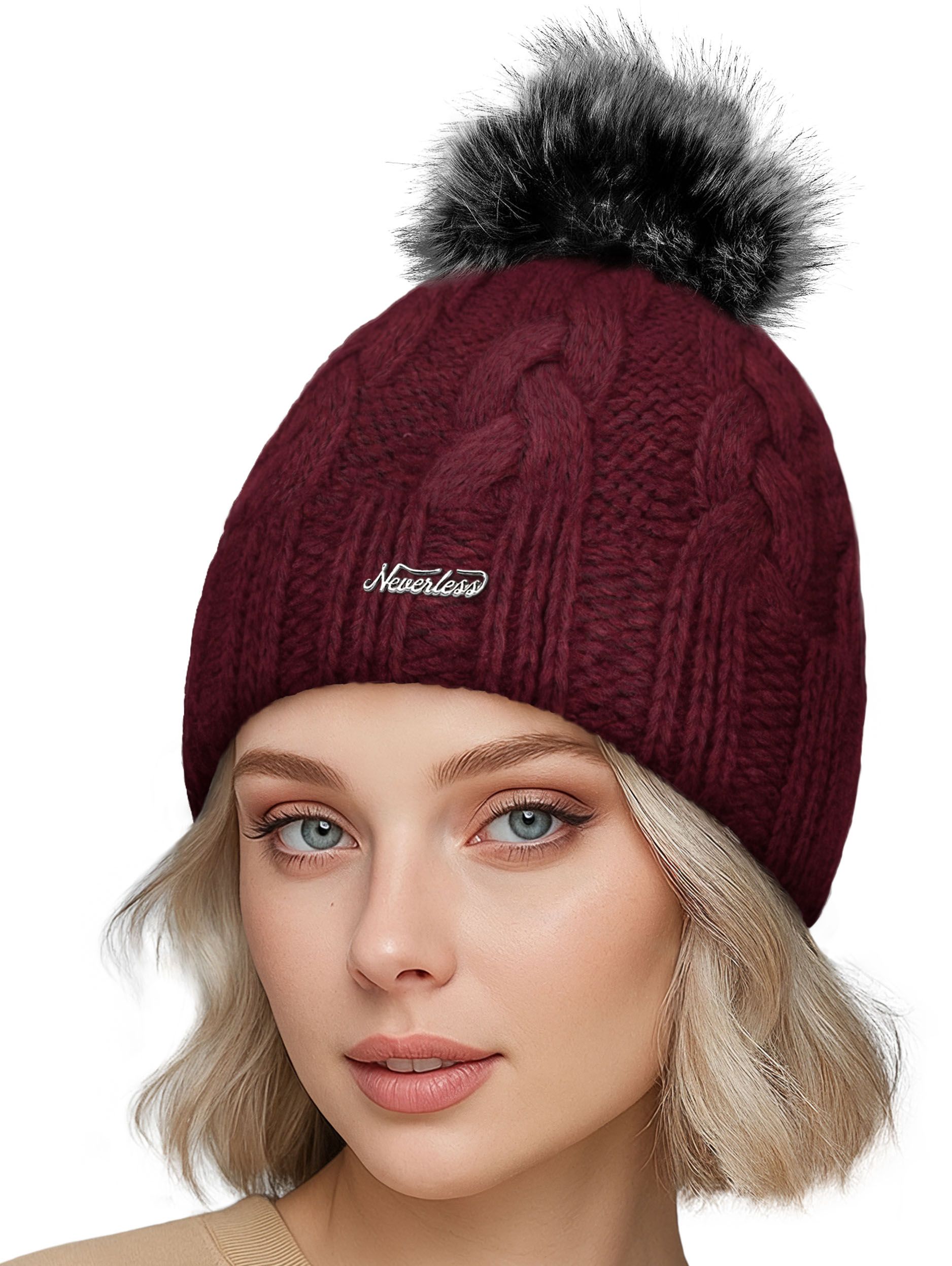 Damen Strickmütze Zopfmuster Fleccefutter Bommelmütze Pudelmütze Wintermütze Accessoires Herbst Winter Model 2213 Neverless®