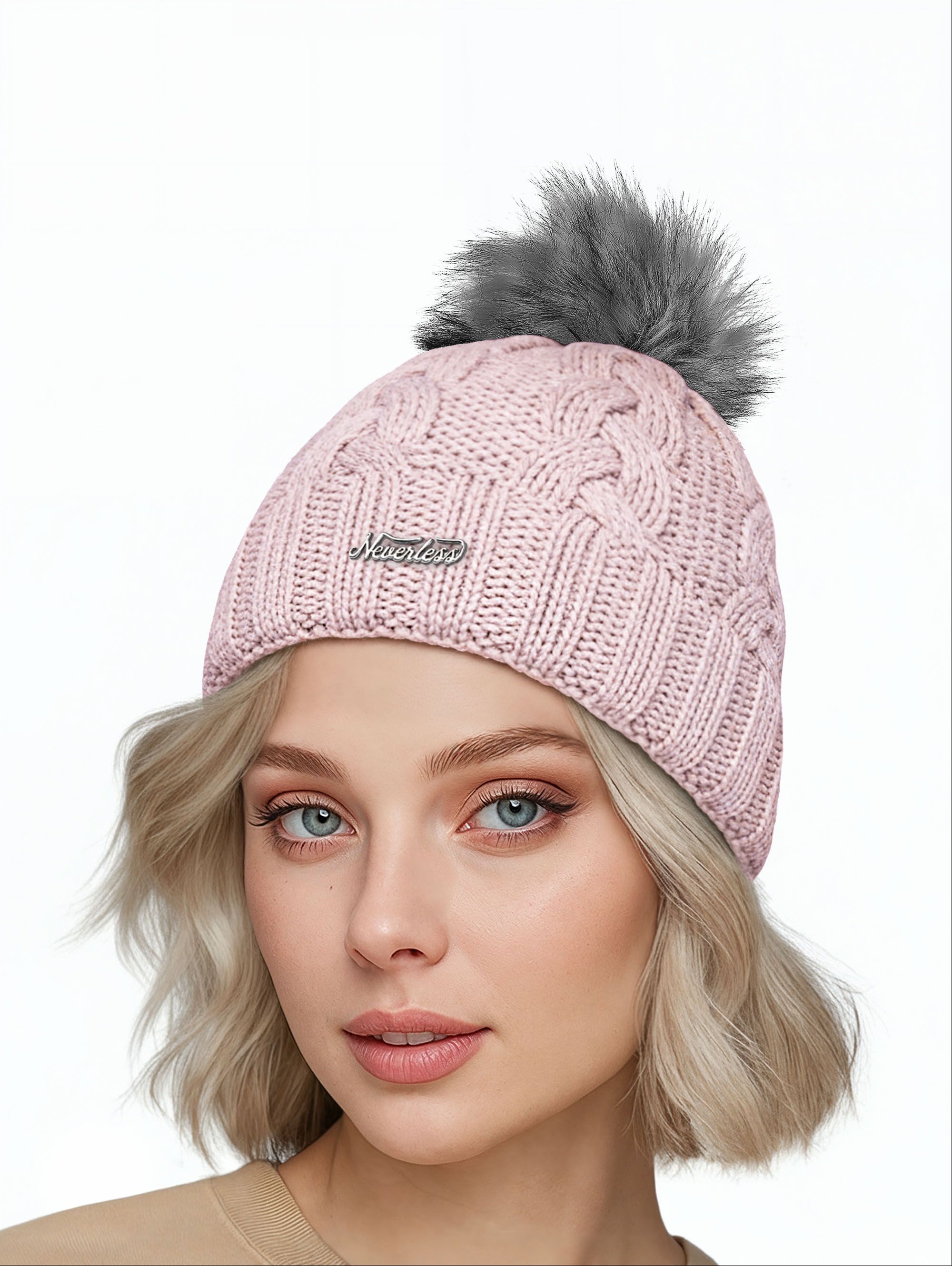 Damen Strickmütze Zopfmuster Fleccefutter Bommelmütze Pudelmütze Wintermütze Accessoires Herbst Winter Model 2213 Neverless®