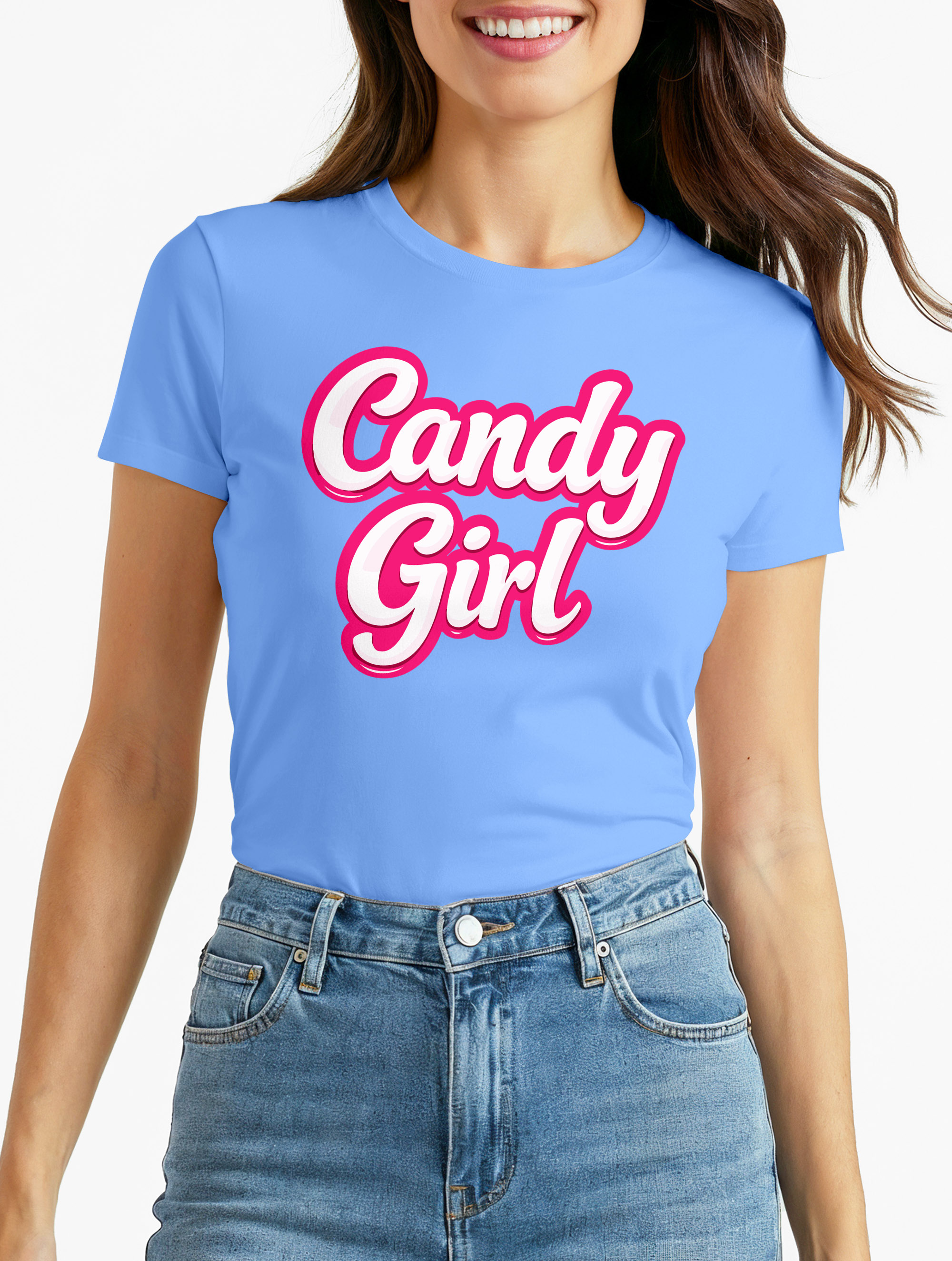 - Lustiges Karneval T-Shirt für Damen mit „Candy Girl“ Print, ideal als Fasching-Shirt oder als Oberteil für ein kreatives Süßigkeiten-Kostüm. Perfekt für Fastnacht- und Mottopartys. Kombiniert mit Rock, Tüll oder Accessoires wird es zum auffälligen Partyshirt für jecke Tage