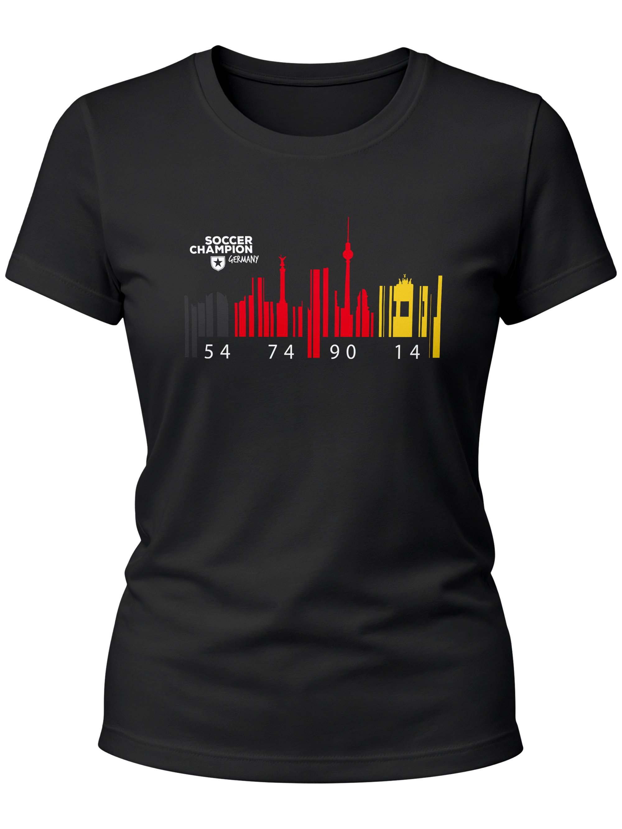 • cooles Damen WM T-Shirt mit Berlin Skyline in den Deutschland-Farben Schwarz-Rot-Gold der Marke MoonWorks®