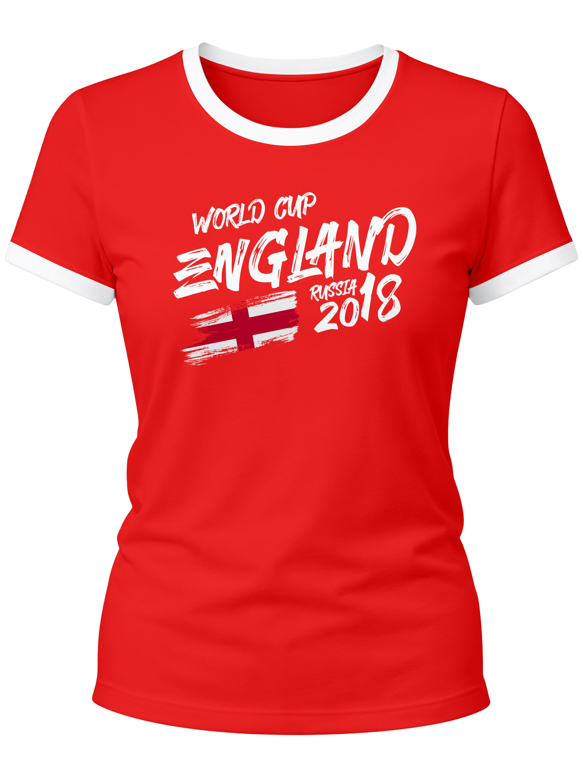 • cooles Damen T-Shirt zur WM 2026 mit großem "England" Schirftzug und England-Flagge im markanten "Brush-Stil" der Marke Moonworks®