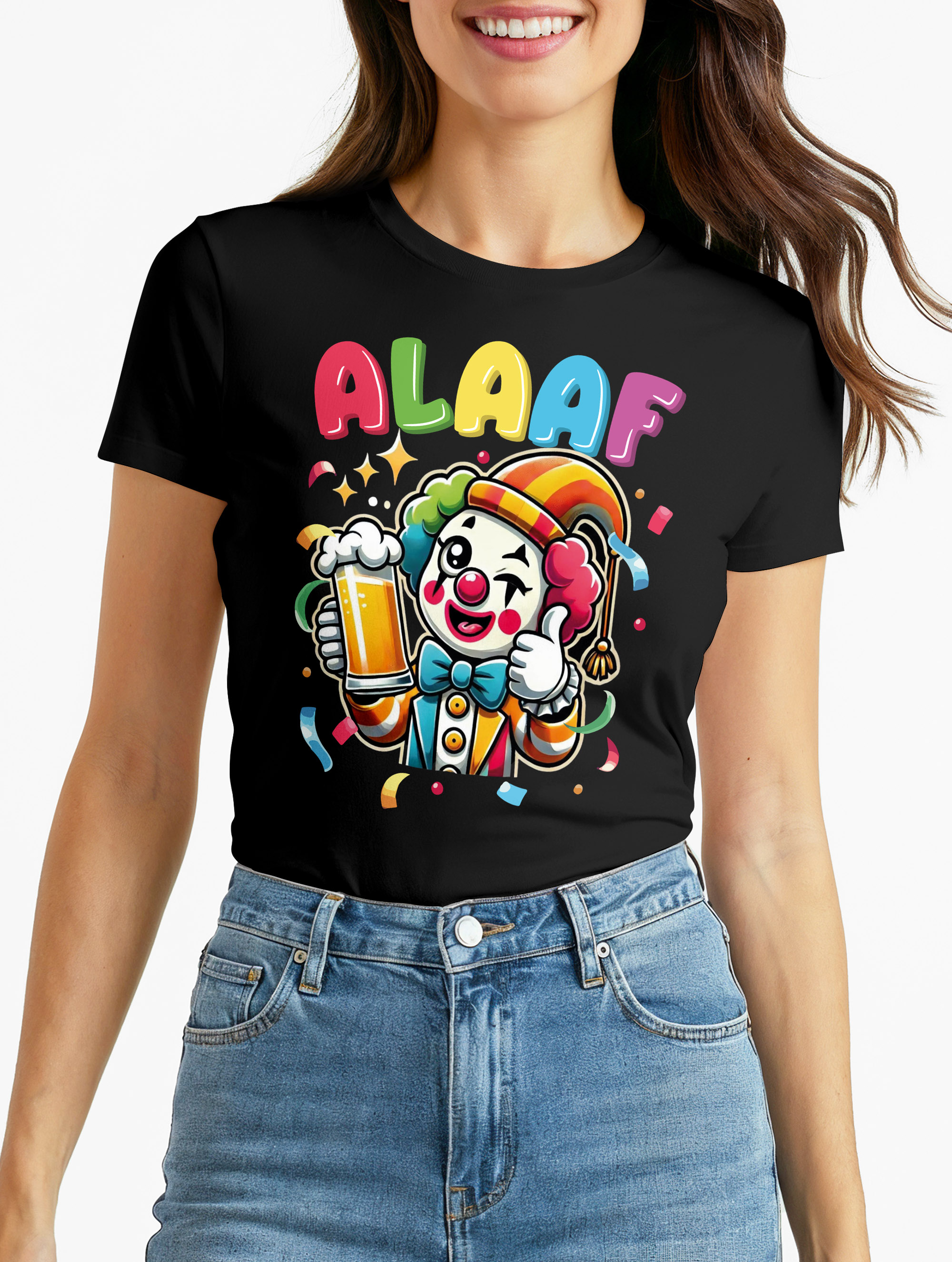 - Unser Faschingsshirt besticht mit einem fröhlichen Clown-Motiv mit Bier und Konfetti – ein echter Hingucker für Karneval, Fasching und jede Kostümparty! Prost, Helau und Alaaf!