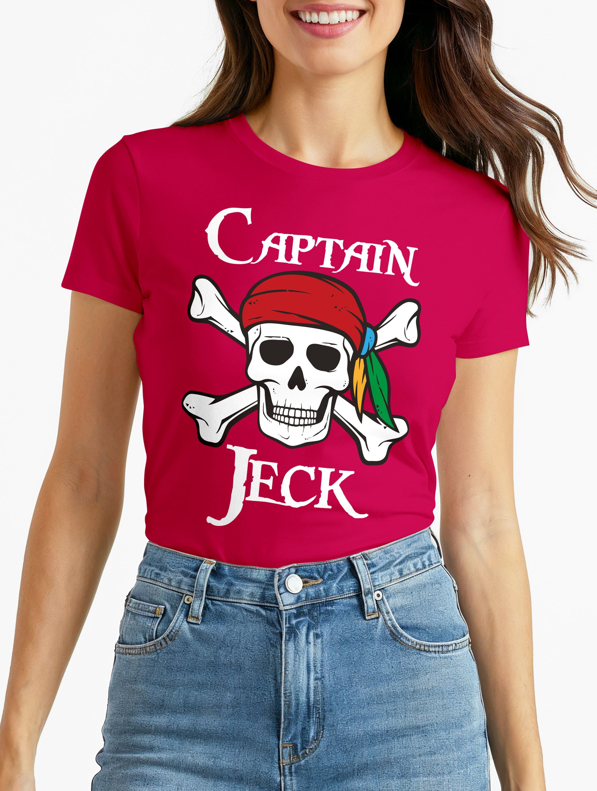 - Piraten-Kostüme sind nicht nur was für kleine Jungs, auch coole Frauen schmeißen sich an Fasching gerne in eine Piratenkutte. Ein cooles Totenkopf T-Shirt mit witzigem Wortspiel "Captain Jeck" ist das perfekte Oberteil für ein zeitgemäßes Piraten Outfit