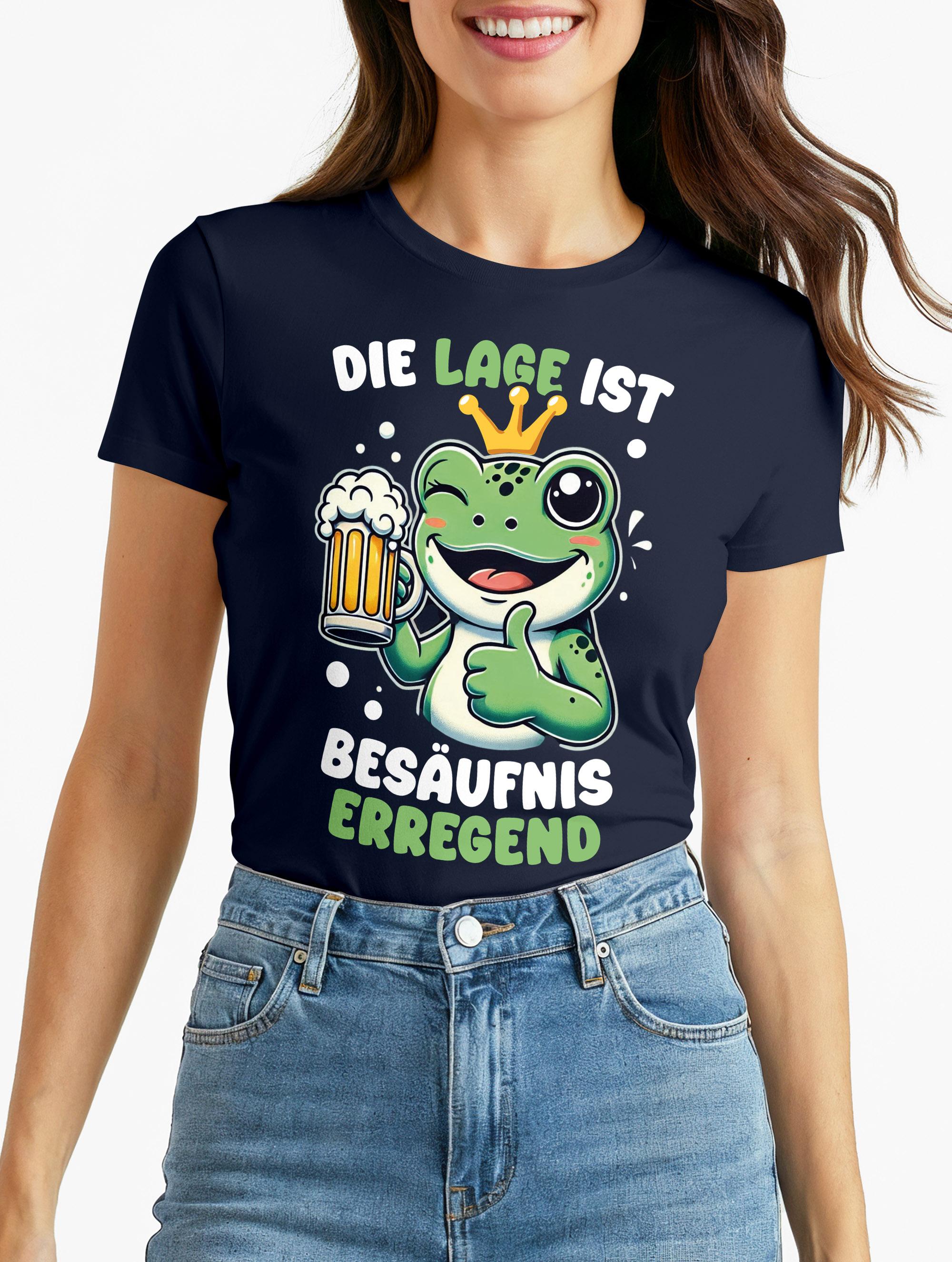 • Lustiges Damenshirt mit witzigem Spruch "Die Lage ist besäufniserregend"und bedruckt passendem Motiv. Du bist auf der Suche nach einem witzigen Partyshirt, mit diesem orignellen Printshirt machst du alles richtig!