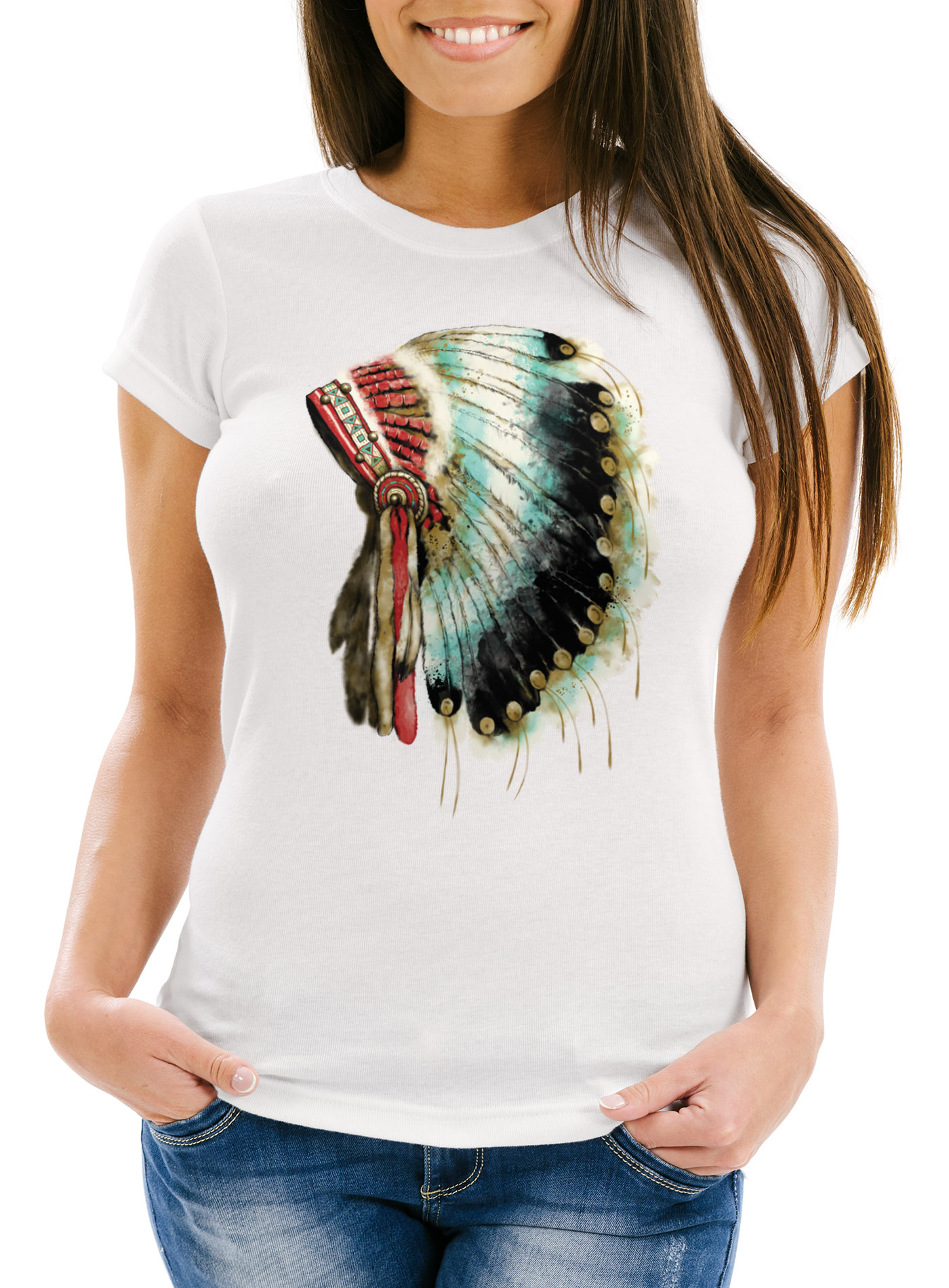 • cooles Damen T-Shirt mit großem Indianer Aufdruck der Marke Neverless®