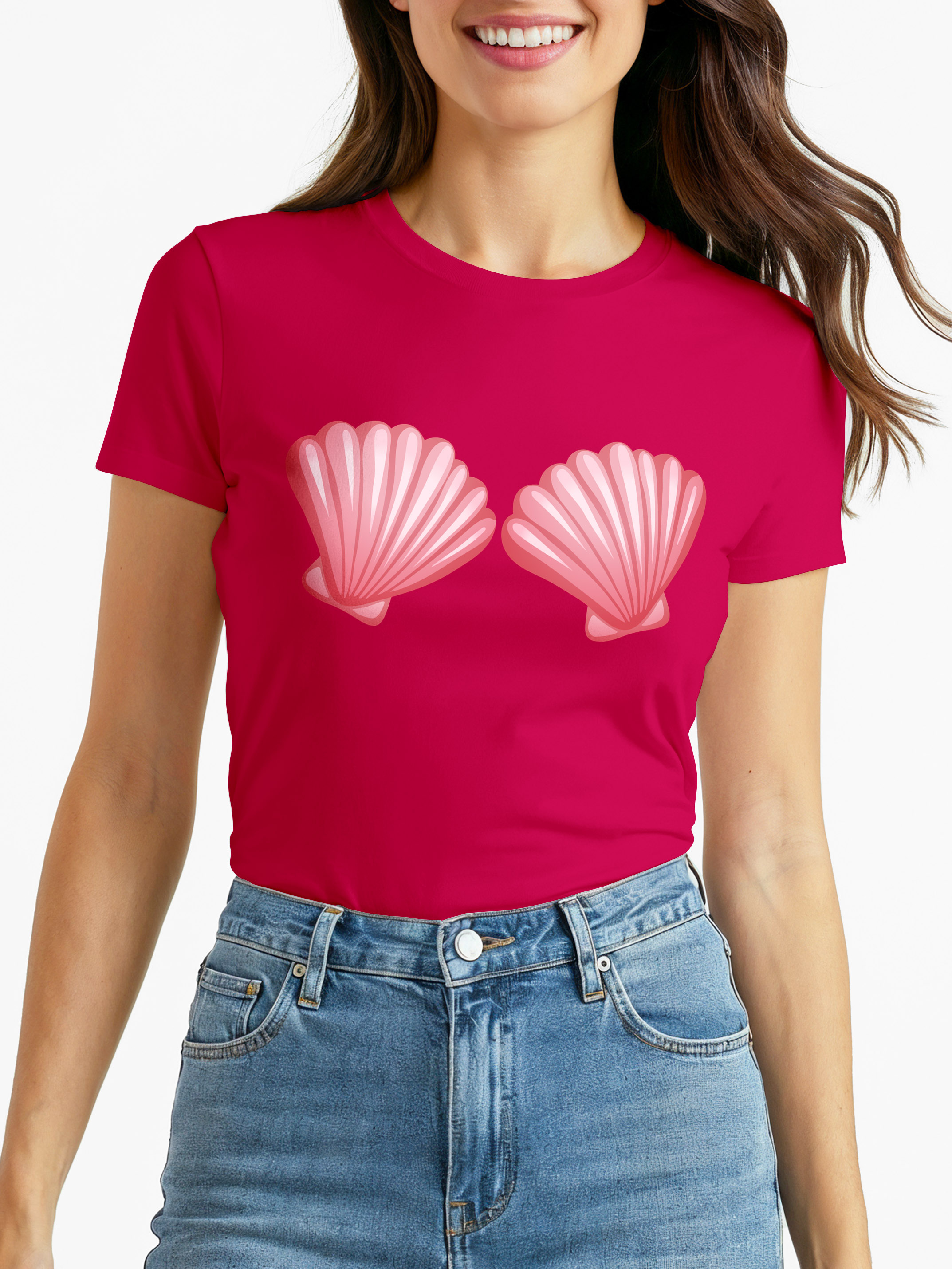 - Einfaches Meerjungfrau-Kostüm – Dieses Muschel-Shirt ist ein unkompliziertes Faschingsoutfit zum Anziehen und Losfeiern, aber auch ideal als Oberteil eines kreatives Faschingskostüm, kombinierbar mit Tüll, Rock, Glitzer oder Accessoires