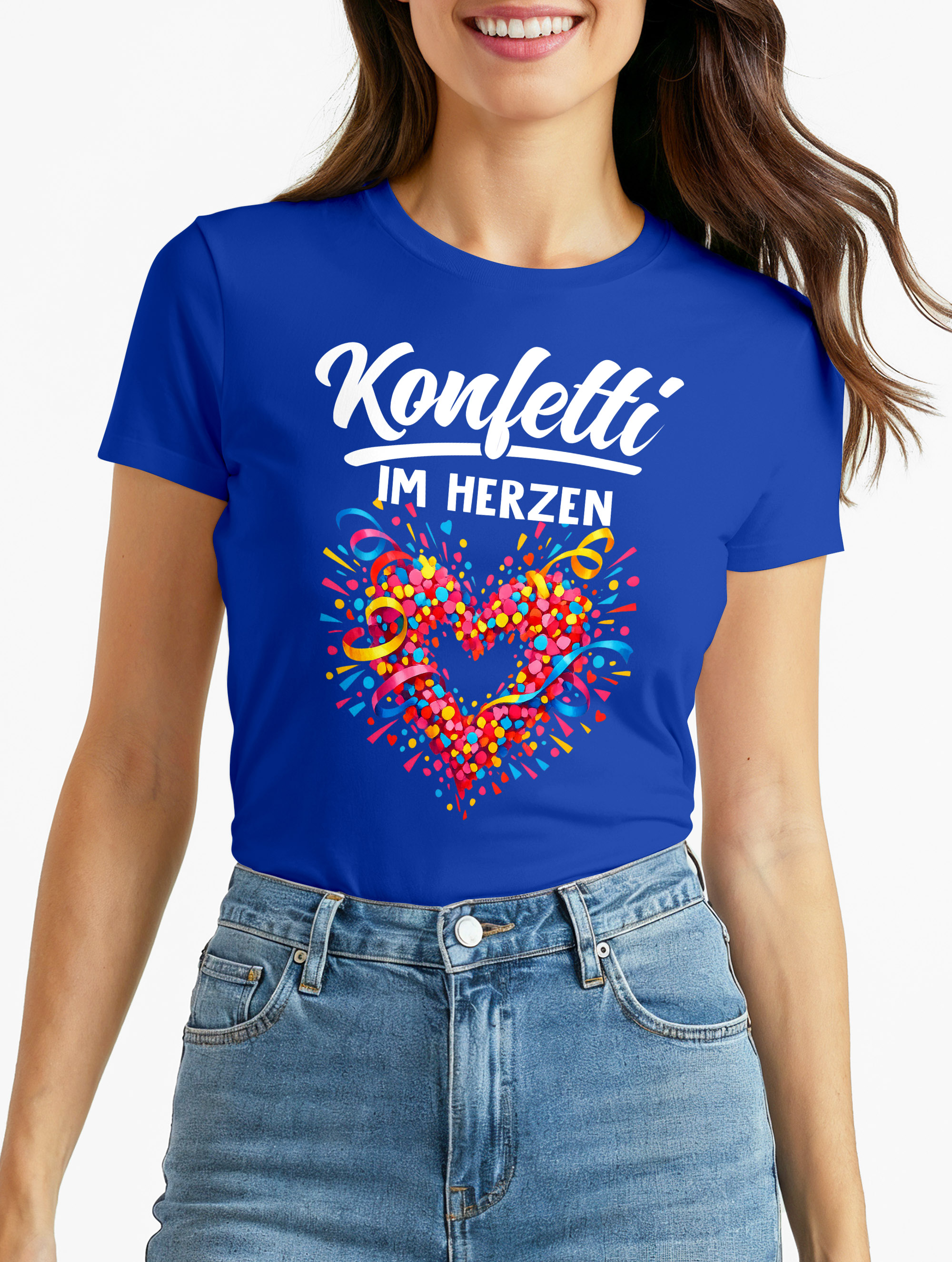 - Konfetti im Herzen, Lächeln im Gesicht: Dieses Karneval T-Shirt mit "Konfetti im Herzen" Print ist für alle, die beim ersten Trommelschlag Gänsehaut bekommen, die Nächte durchtanzen und wissen, dass Fasching mehr ist als ein Fest – es ist ein Lebensgefühl