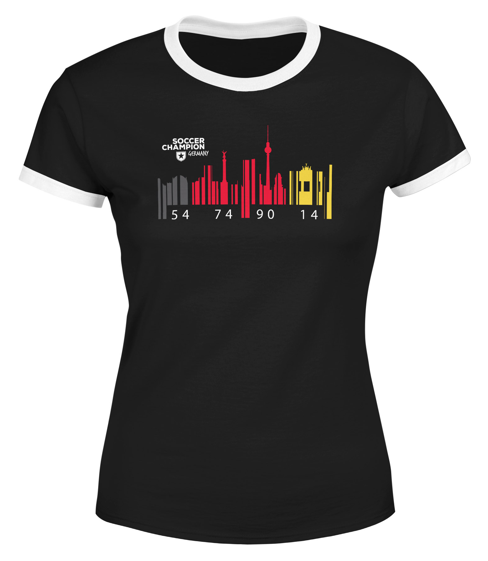• cooles Damen Retro WM T-Shirt mit Berlin Skyline in den Deutschland-Farben Schwarz-Rot-Gold der Marke MoonWorks®
