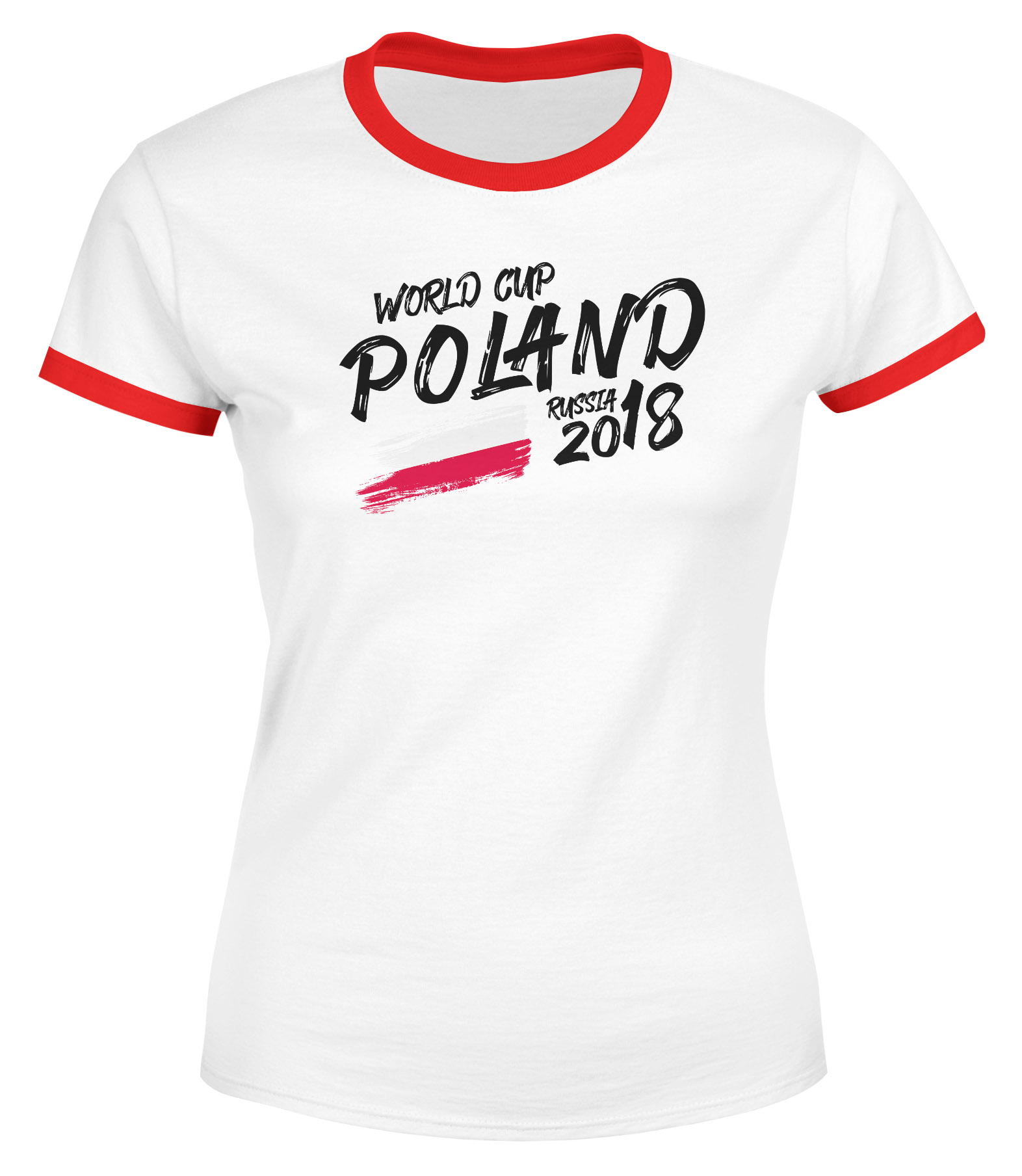 • cooles Damen T-Shirt zur WM 2026 mit ausgefallenem Motiv mit großem "Poland" Schirftzug und Polen-Flagge im markanten "Brush-Stil" der Marke Moonworks®