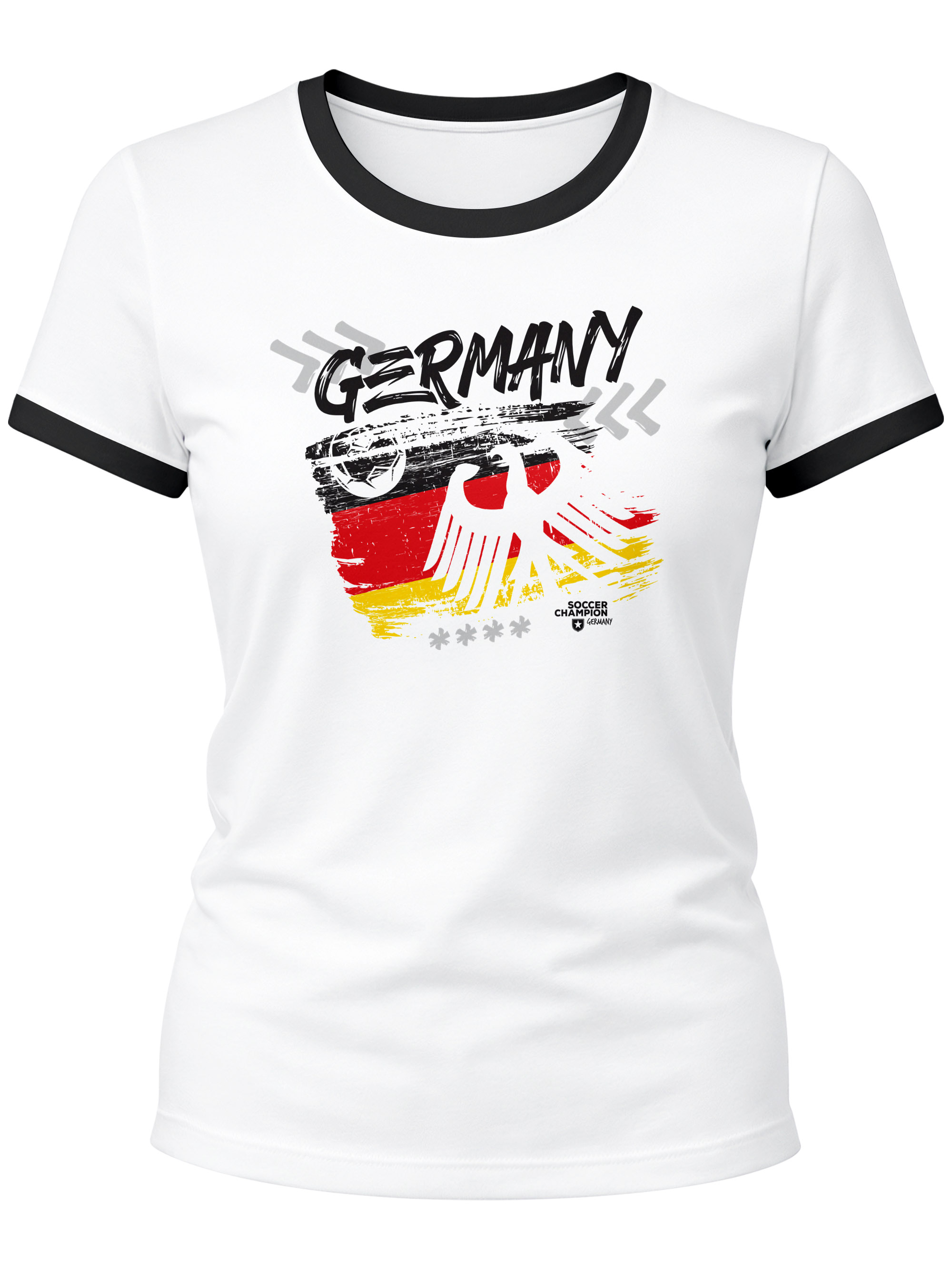 • mit diesem Moonworks® Fan-Shirt ist das WM-Outfit gesichert: cooles Damen T-Shirt zur WM 2026 mit coolem Germany-Schirftzug und Deutschland-Flagge mit Adler und Fußball - die perfekte Kombi!