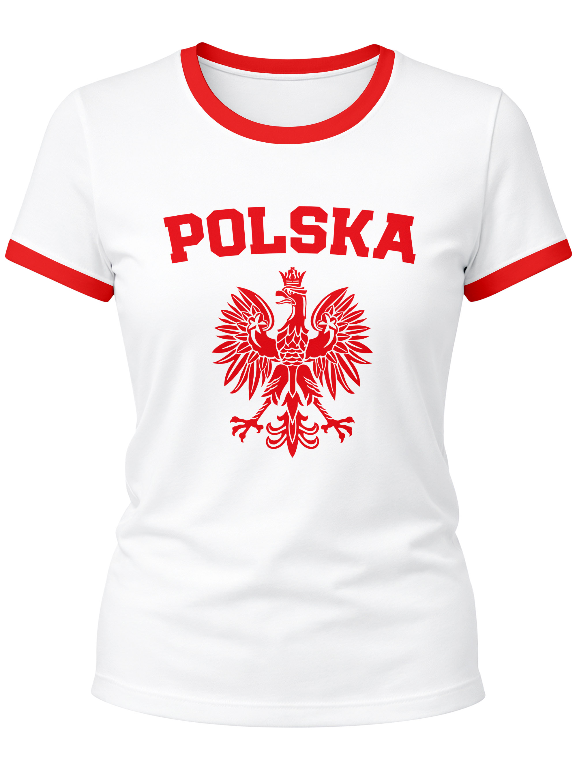 • cooles Damen Retro T-Shirt zur WM 2026 mit weißem Adler Wappen in den Farben der polnischen National Flagge der Marke Moonworks®
