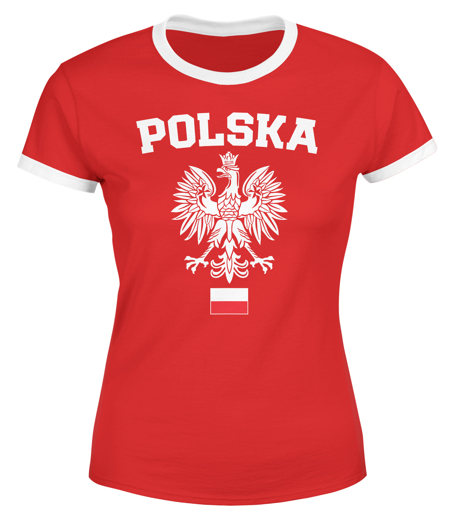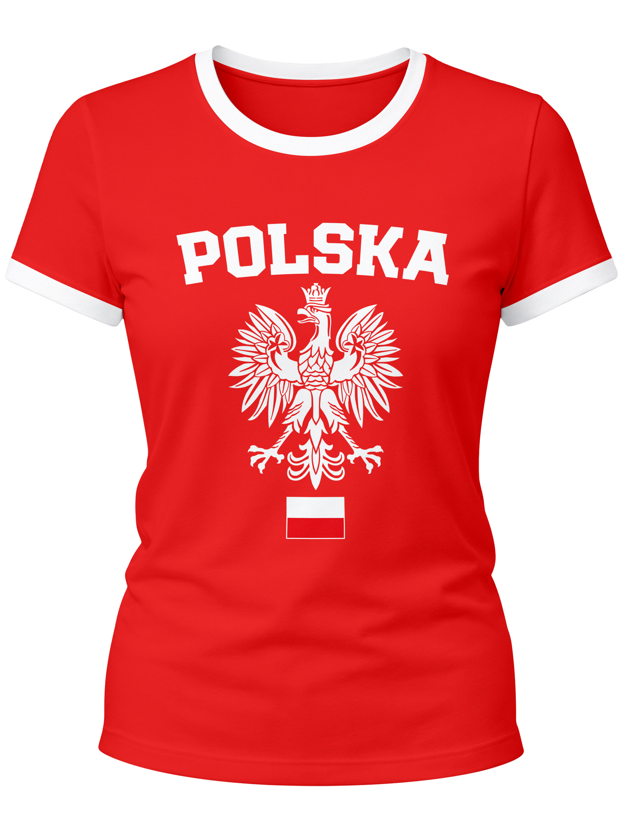 • cooles Damen Retro T-Shirt zur WM 2026 mit weißem Adler Wappen in den Farben der polnischen National Flagge der Marke Moonworks®