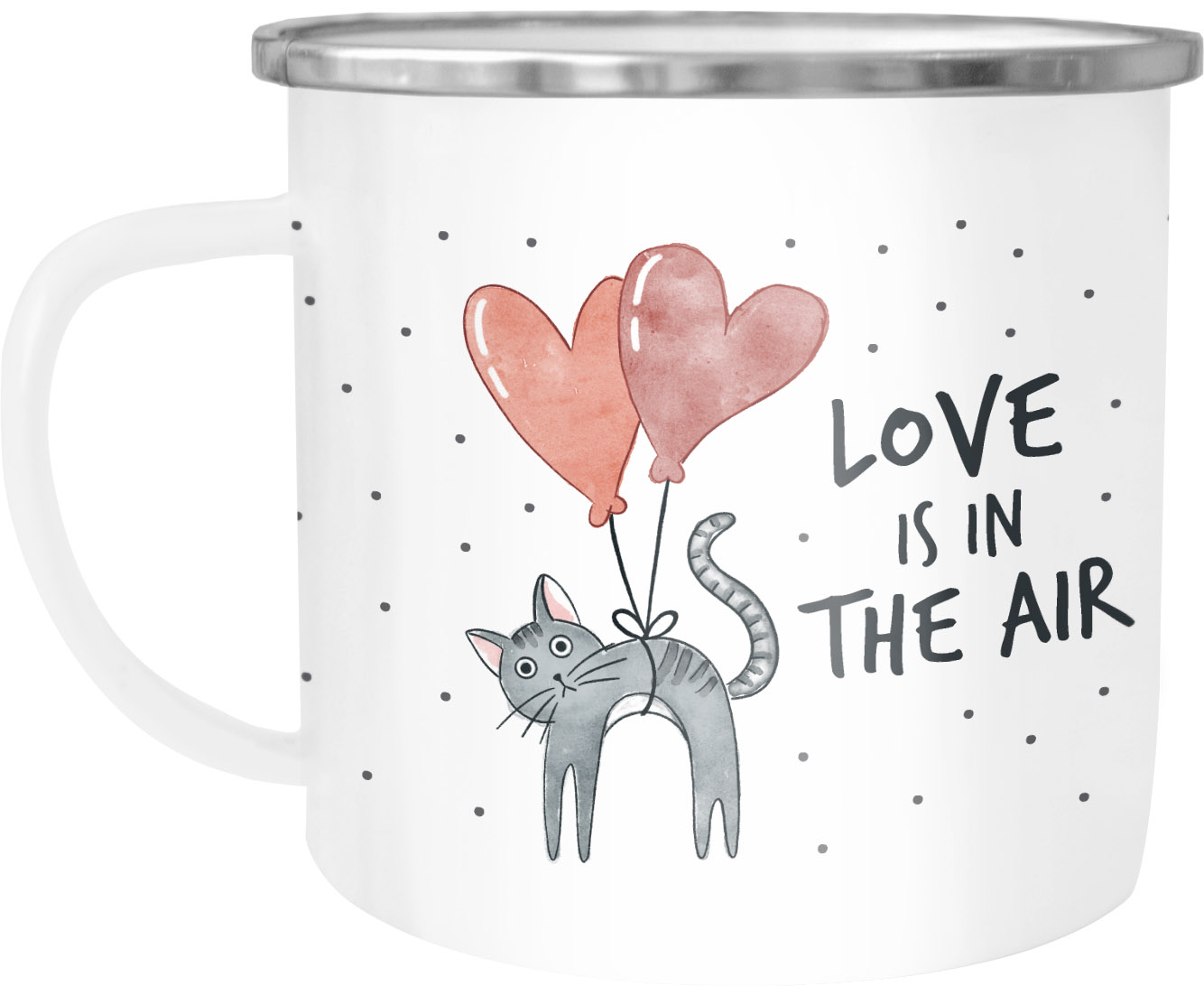 - Süße Geschenkidee zum Valentinstag mit witzigem Katzenmotiv und Spruch "Love is in the air". Natürlich dürfen Herzen bei einem Liebesmotiv nicht fehlen ;-) Unser Design im Watercolor Stil ist daher perfekt geiegnet für eine originelle Liebestasse aus Emaille