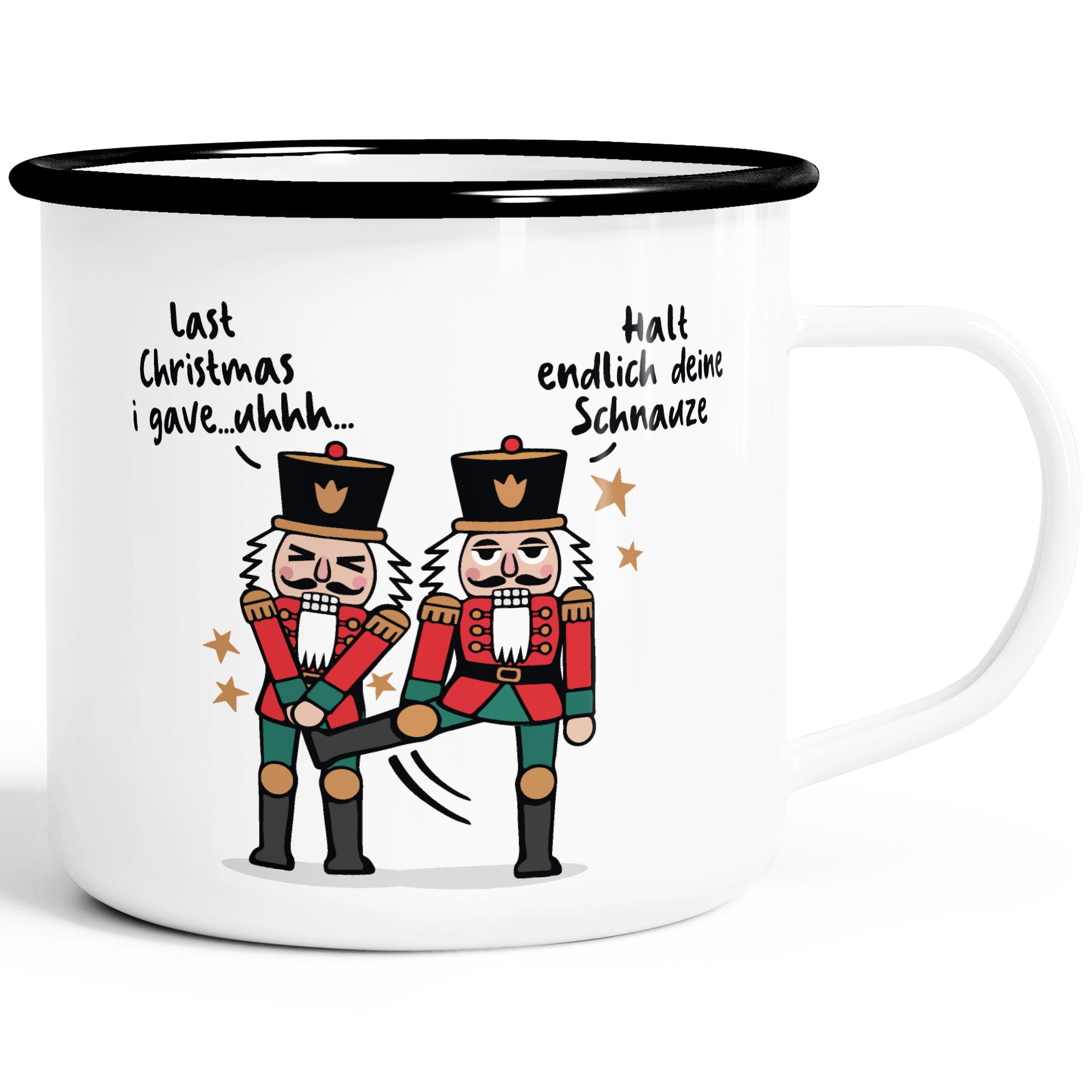 Emaille-Tasse Nußknacker Jingle Balls Aufdruck Lustige Geschenkidee Schwarzer Humor Weihnachtstasse Emaille-Becher Moonworks®