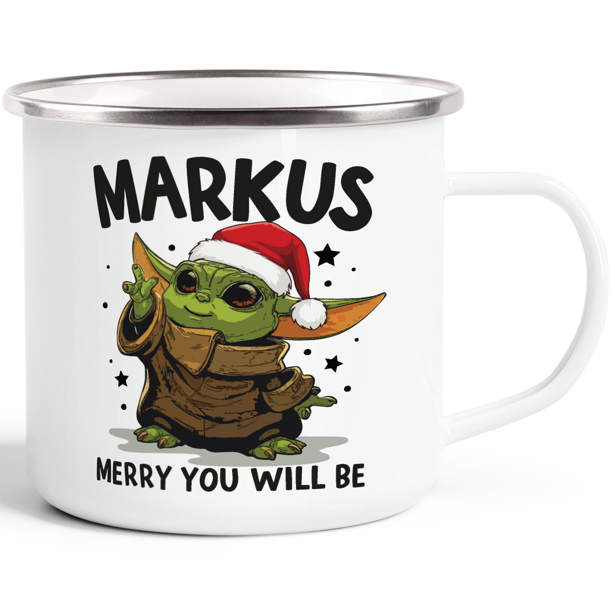 Emaille-Tasse Weihnachten personalisiert Baby Geschenk lustig Spruch mit Namen Moonworks®
