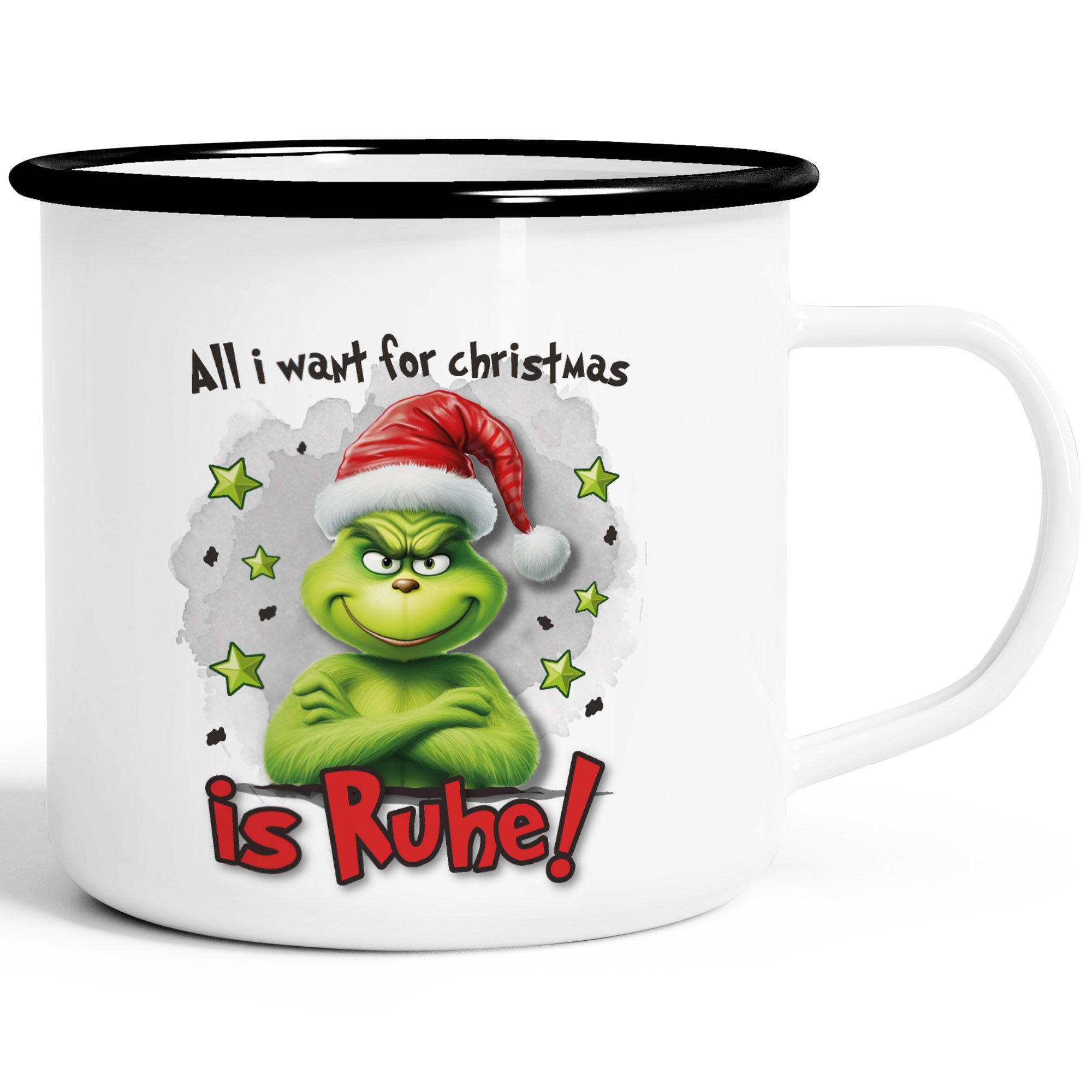 Emaille-Tasse Weihnachtsnörgler Geschenk für Weihnachtsmuffel Ich hasse Menschen Emaillebecher Weihnachtstasse lustig Moonworks®