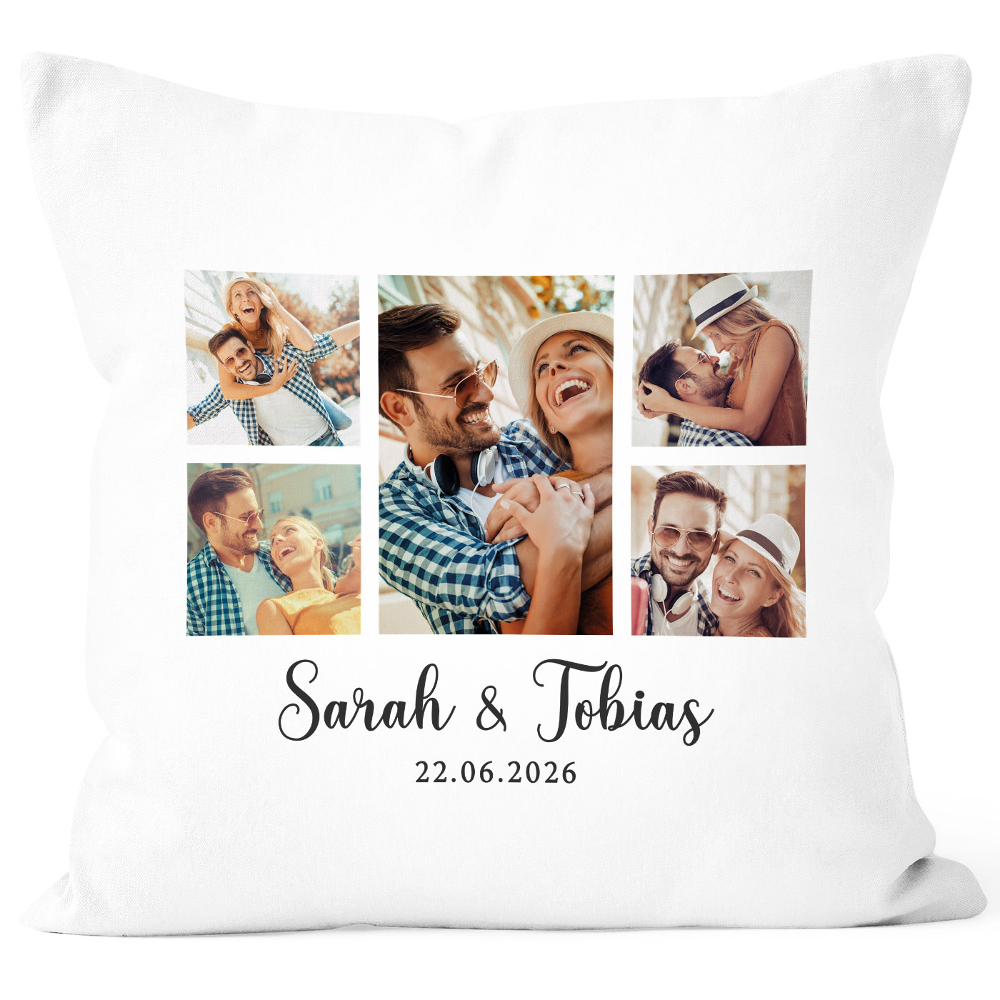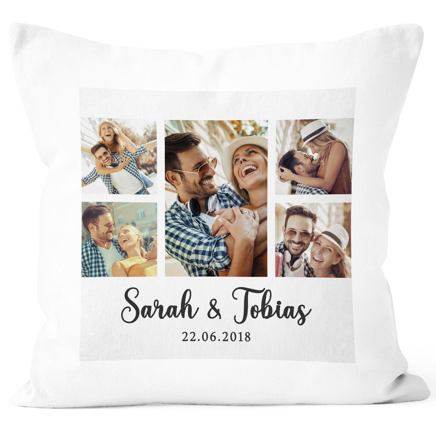- Die perfekte individuelle Geschenkidee für deine(n) Liebste(n): eine Kissenhülle mitselbstgestalteter Fotocollage! Mit deinen Lieblingsbildern und personalisiert mit Namen, Datum, eigenem Wunsch-Text oder auch einem individalisierbaren Kalenderblatt entsteht so ein einzigartiges Partner-Geschenk