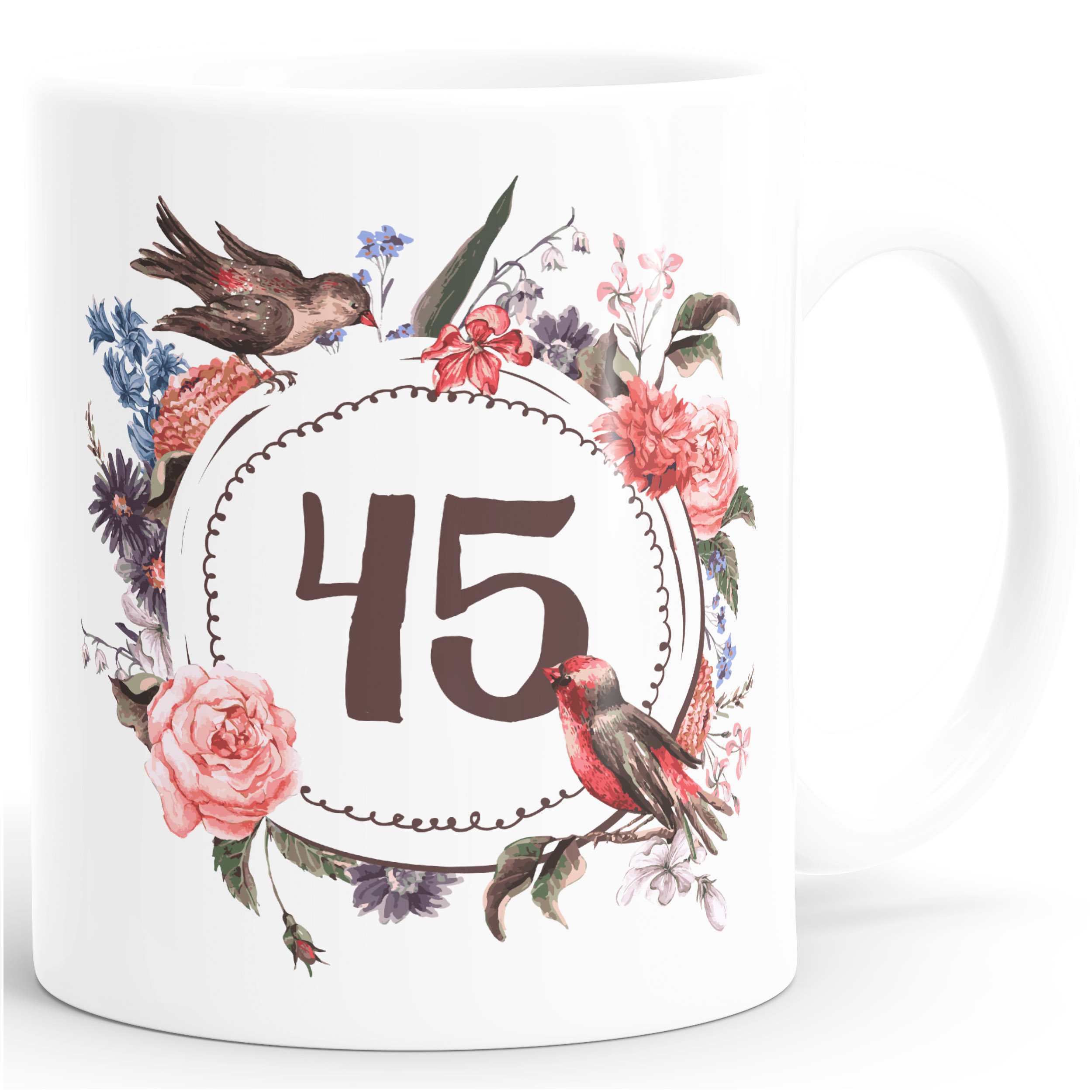Die große und formschöne {style_variation_string} in der Mitte wird von unzähligen wunderschönen Blumen umrankt. Zwei Vögel perfektionieren dieses wunderschöne Gesamtbild. Harmonisch und zauberhaft gestaltet wird diese Tasse zu einem wundervollen Geburtstagsgeschenk. Ob zum runden Geburtstag oder der geknackten Schnapszahl - diese Tage müssen gefeiert werden!