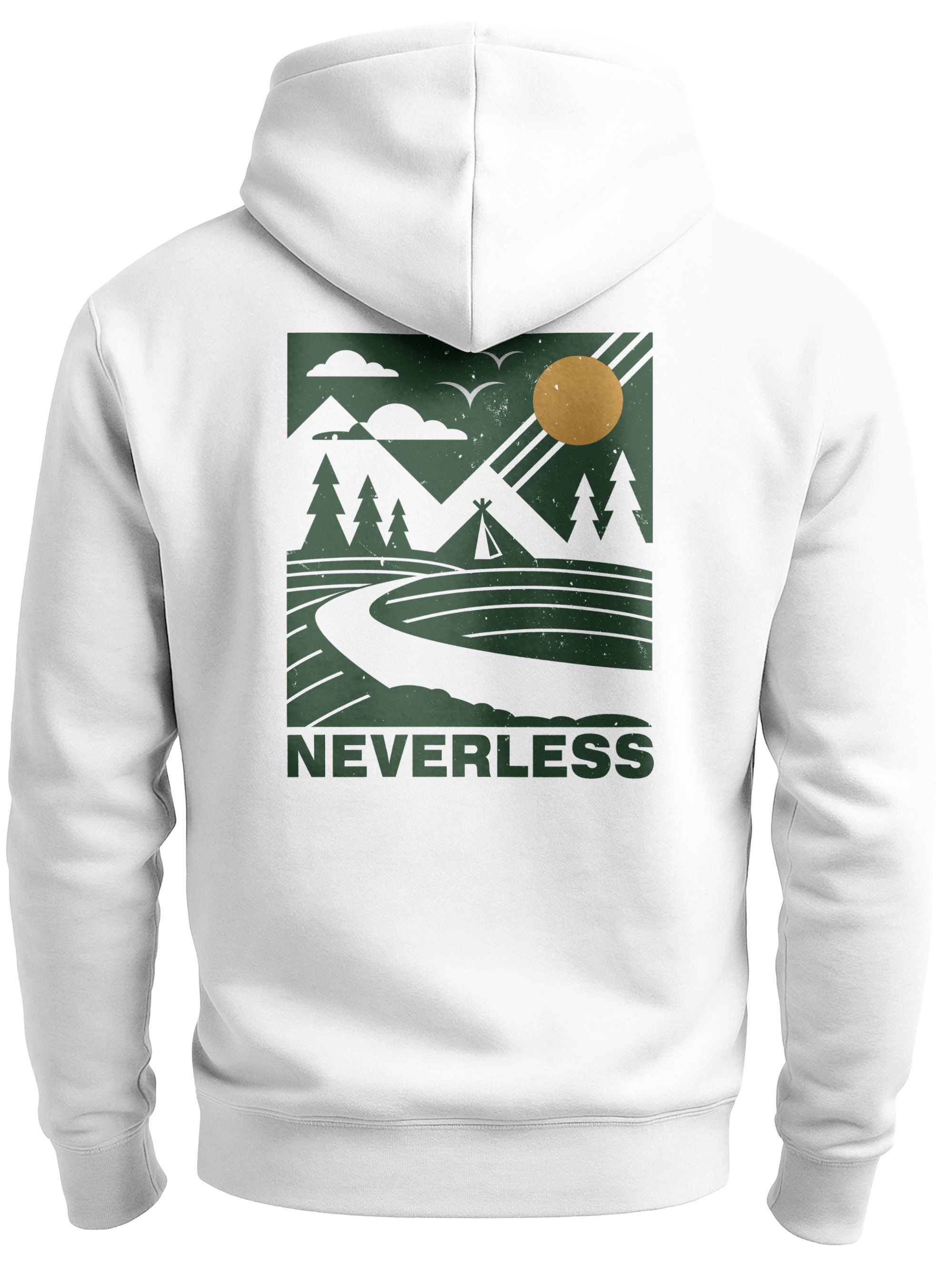 - Motiv: Neverless Schriftzug, Outdoor und Camping, Wald, Berge